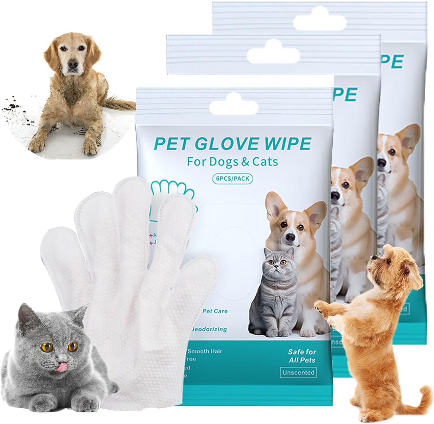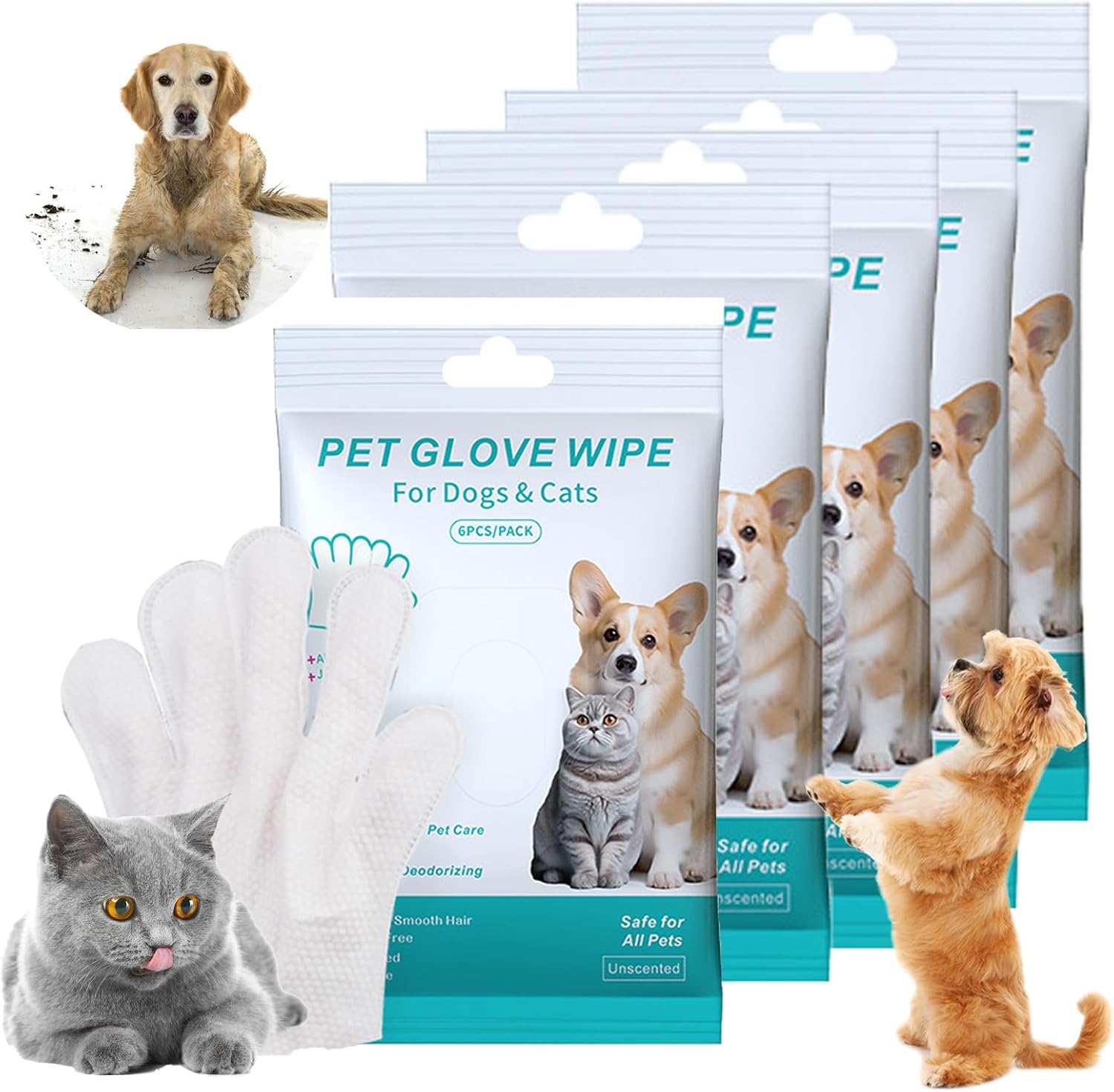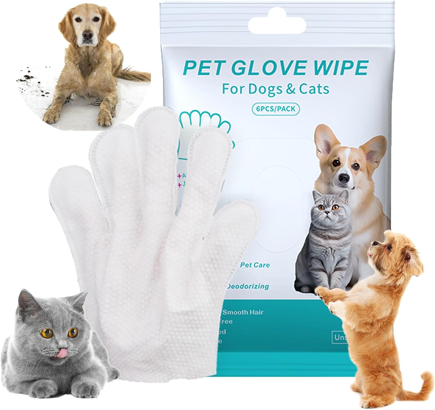 Rinse-Free Dog Shampoo Mitts – Pet Bath Wipes, 6 Packs, Pet Glove Wipes for Dogs Cats, Dog Cleaning Gloves, No Rinse Wipes Cleaning Grooming Gloves for Dogs Cats Daily Care and Traveling No more wrestling your anxious pet into the bath! These mitts make grooming calm, quick, and mess-free. Perfect for: Walks & outdoor adventures Travel & camping trips Post-park clean-ups Emergency messes & accidents Feature: 1. No rinsing needed—wipe & go for quick, hassle-free dog cleaning 2. Ergonomic palm-fit design: cleans hard-to-reach spots easily 3. Natural, safe formula: gentle on dog’s skin 4. Resealable sealed packaging: keeps wipes fresh, portable 5. Perfect for travel/outdoors: great after walks/hikes Specification: Size: 24 * 14.5 * 1.8cm Net Weight: 180g Packing List: 1/2/3/5 Packs * Pet Glove Wipes Note: 1. Please allow 1-2cm error due to manual measurement 2. Due to different monitors and light, the pictures may not show the actual color of the item. Thank you for your understanding