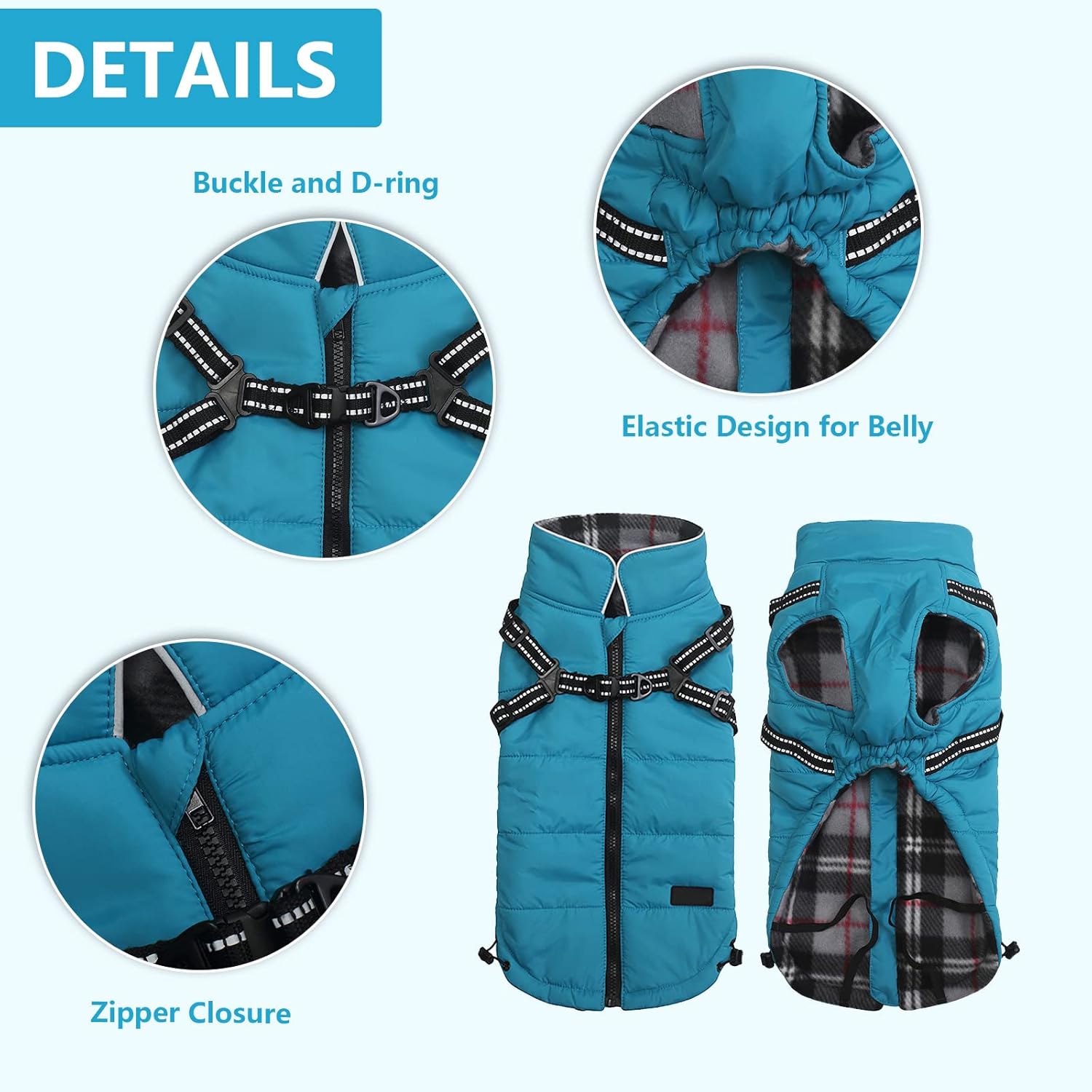 Geyecete Winter Warm Coat Waterproof Dog Winter Jacket with Harness Traction Belt,Pet Outdoor Jacket Dog Autumn and Winter Clothes for Medium, Small Dog-Blue-S