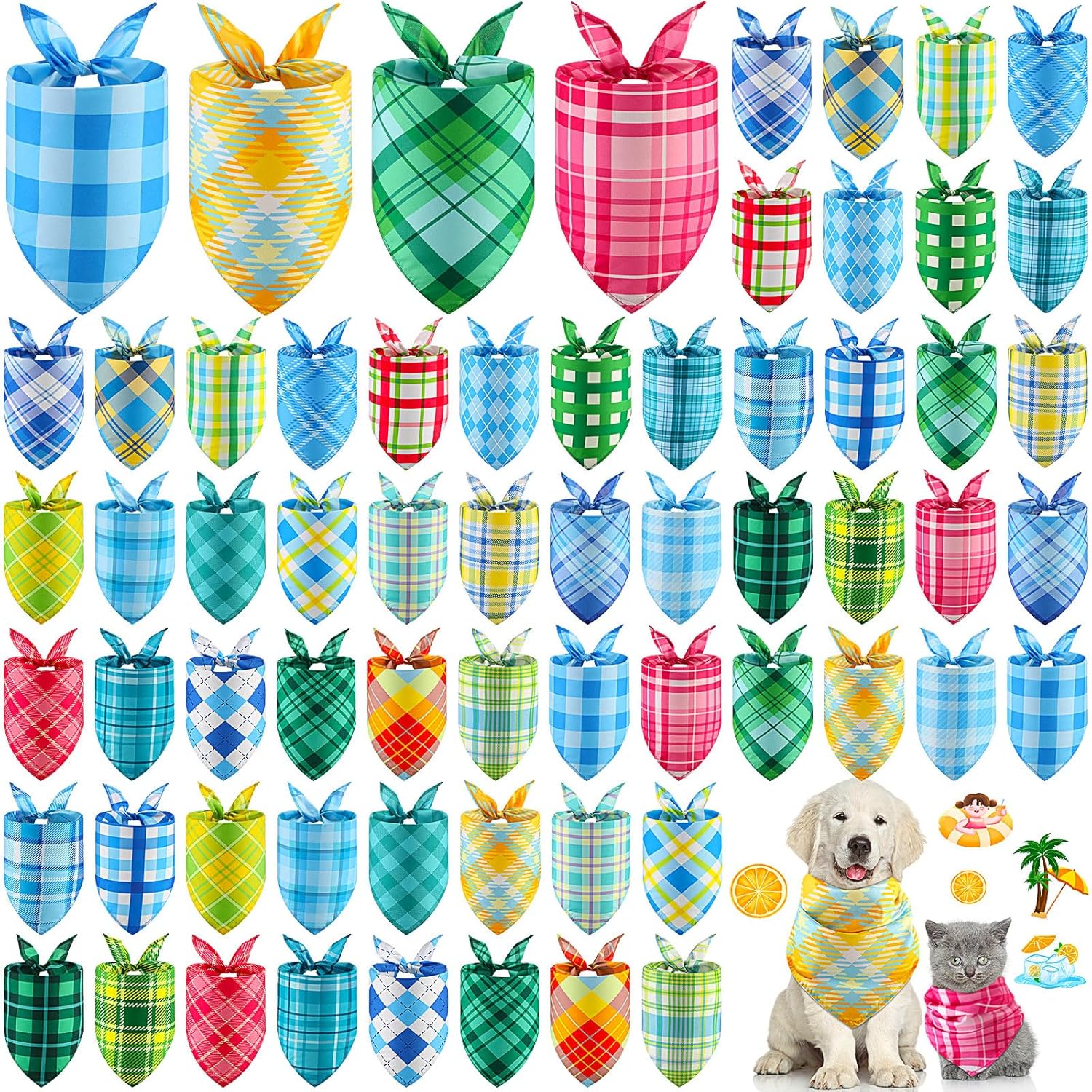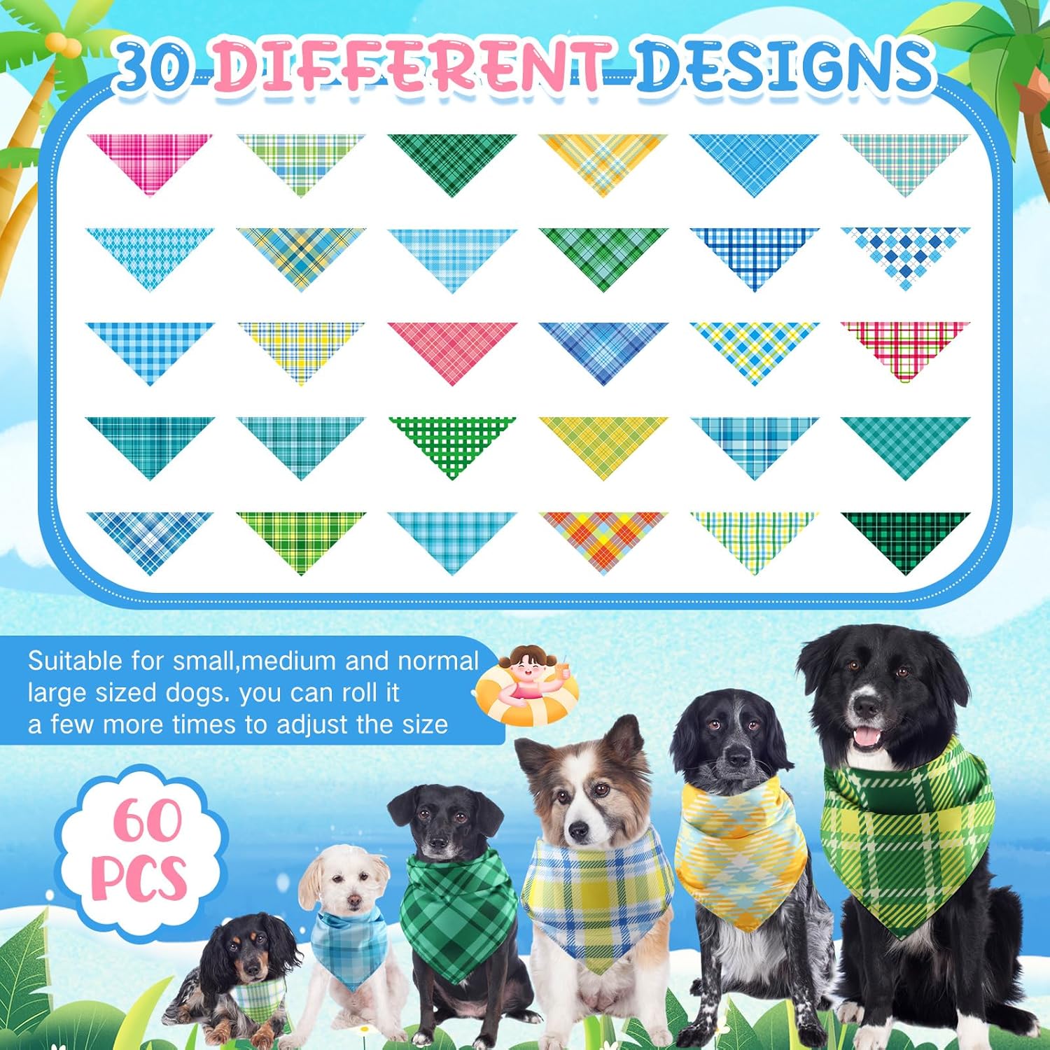 - Charming Summer Themed Design: capture the essence of the season with our 60 pieces summer plaid dog bandanas; Festive and vibrant, these bandanas feature diverse, classic plaid patterns in a variety of summer colors; The cute accessory to make your pet look special