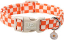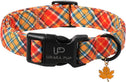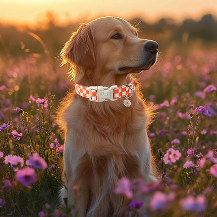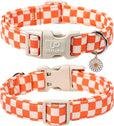 - Charming Gingham Design for Fall: This fall dog collar features a classic orange and white checkered pattern, bringing a playful yet cozy picnic vibe to your pet's seasonal wardrobe. Ideal for autumn walks, Thanksgiving, and outdoor family photos.
