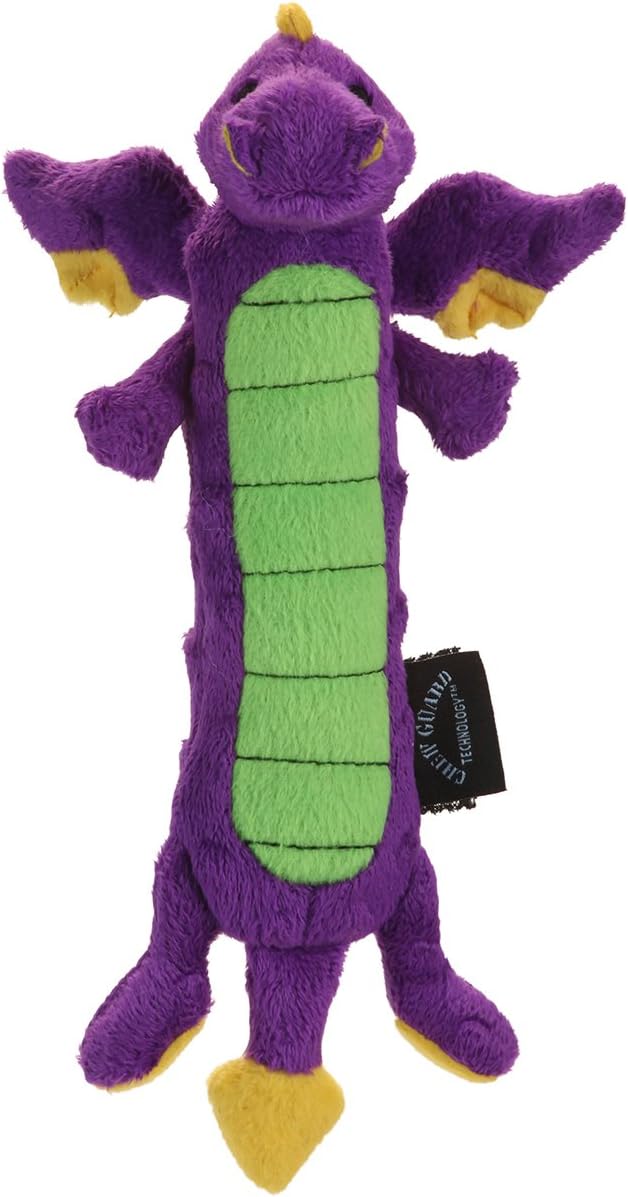 Product Description goDog Dragons Bubble Plush Squeaky Plush Dog Toys are whimsical, bright creatures that are as tough as they are cute. Made with bubble plush and lined with Chew Guard Technology, these toys stand up to rough play. Minimal stuffing gives these toys a fun floppy feel that dogs love, and guarantees less mess for homes with dogs that like to chew up their toys! goDog plush dog toys are designed to be stronger and last longer. Made more durable with Chew Guard Technology, a special manufacturing process that adds a super tough and durable lining to soft plush toys. goDog gives pet parents the best of all worlds: innovative products, stylish designs, and exceptional value with a variety of toys and beds to meet a dog's needs for play, retreat, rest, and fun! goDog products are designed to meet child safety standards. DISCLAIMER: Our toys are tougher than standard plush toys, but NOT indestructible; some dogs can destroy Chew Guard toys depending on their play and chew patterns. Amazon.com Our most popular Dragons are every dog's favorite toy! Made with bubble plush and lined with Chew Guard Technology™, these toys stand up to tough play. Minimal stuffing gives these toys a fun "floppy" feel that dogs love! Even though no dog toy is indestructible, our goDog toys with Chew Guard Technology are tougher and last longer than standard soft plush toys...and we GUARANTEE IT! If this toy does not outlast your standard plush, we will send you a onetime replacement. (see product packaging for details) goDog Toys goDog™ is a fun lovin' brand from Quaker Pet Group featuring toys for dogs of all breeds and sizes. A wide array of goDog toys are available with tough Chew Guard™ technology. Chew Guard offers added durability to help toys stand up to tough chewers. goDog toys are bright and colorful! Check out all of the fun families of toys. Quaker Pet Group – a family of products for your family of pets. Quaker Pet Group is committed to providing products that will enrich the lives of pets and their pet-parents world-wide. We offer innovative, solution-based products that meet pet’s needs. Our brands include Sherpa®, goDog™, Hear Doggy!®, SuperCat™, New York Dog™, Fox & Hounds™ and SilverTails™. goDog™ Dragons Large Coral Large Lime Large Periwinkle Large Black Large Pink Large Gray Small Coral Small Lime Small Periwinkle Small Black Small Pink Small Gray