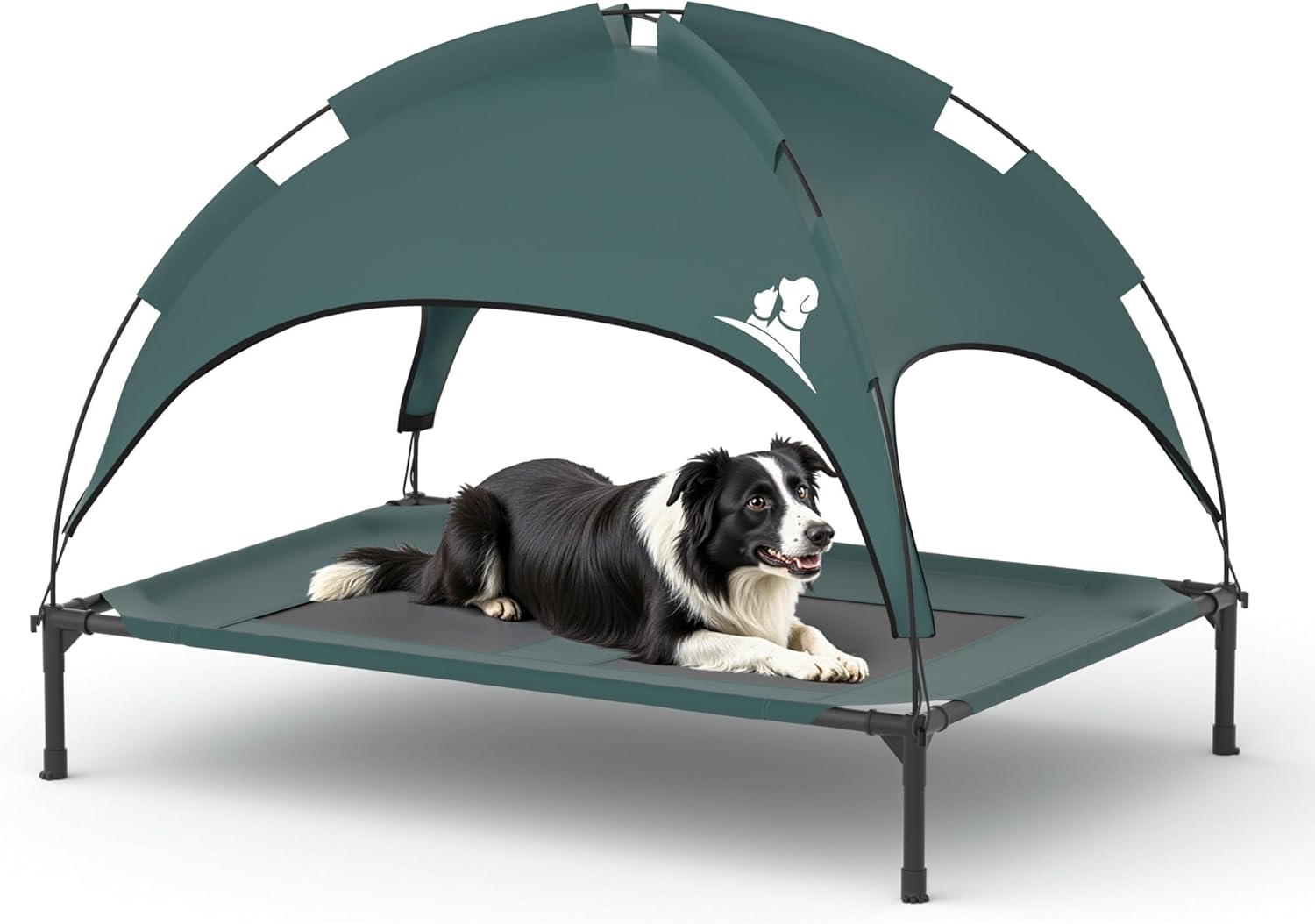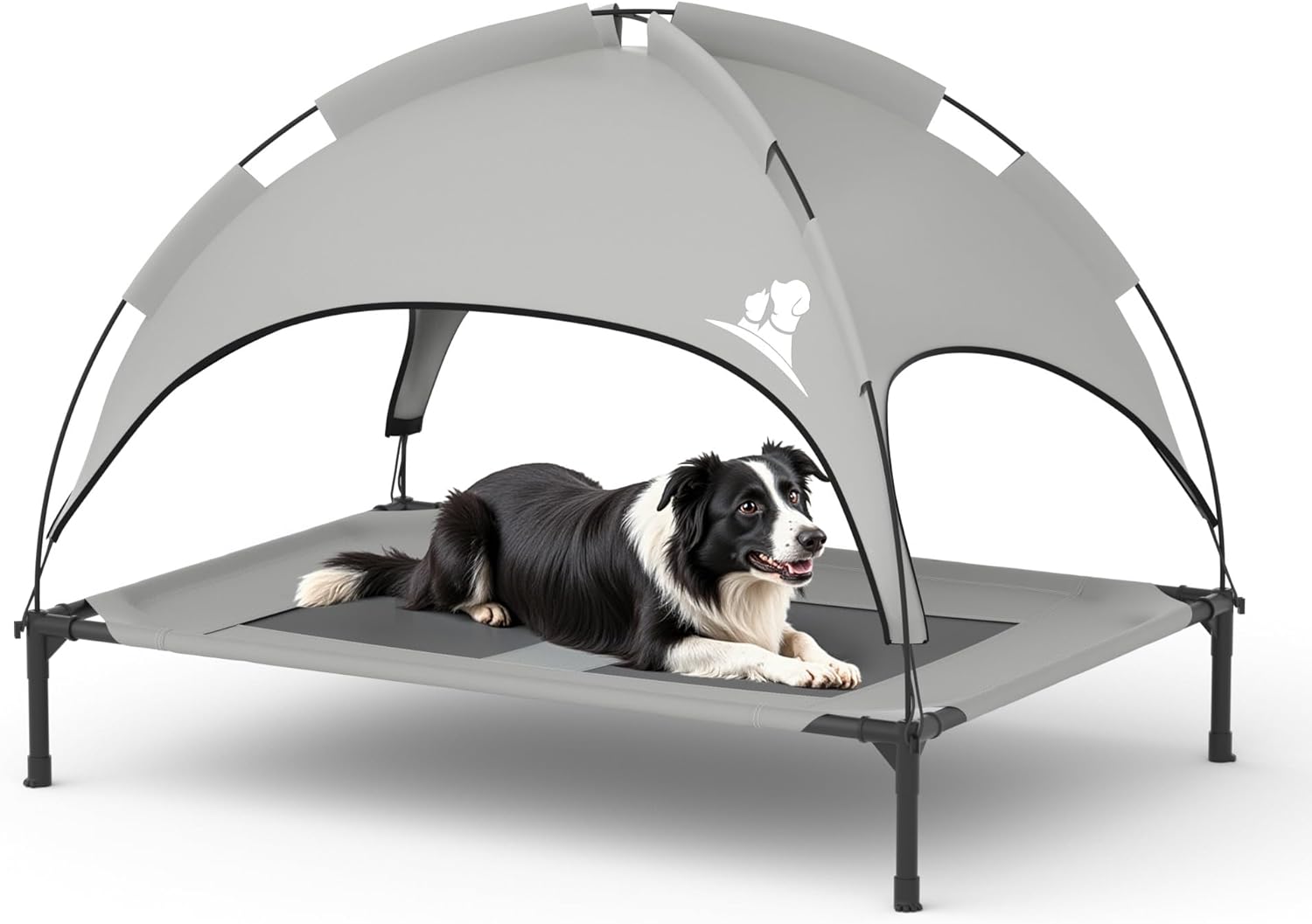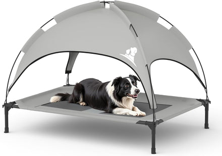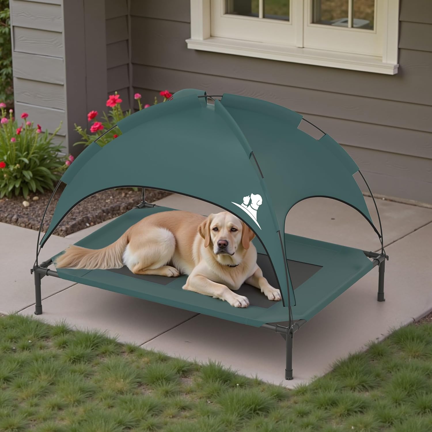 - 【Removable Waterproof Shelter】Equipped with a detachable shade canopy, it can effectively block sunlight and rain, which is very suitable for outdoor use. Whether it's for your backyard, camping trips, or beach outings, this outdoor dog bed is the ideal companion for your pet.
