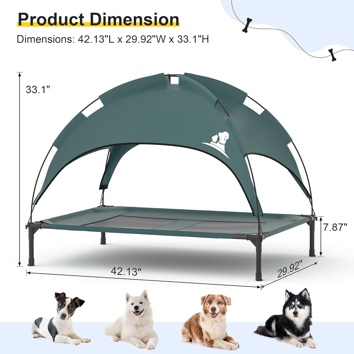 - 【Outside Dog Bed】The elevated dog bed with canopy measures 42”L x 30”W x 33”H, and the canopy is 25 inches high. Our pet bed is generously sized to accommodate dogs of various sizes, such as normal adult Labrador, Boxers, Border Collie, Samoyed etc, allowing them to stretch out and lounge comfortably.