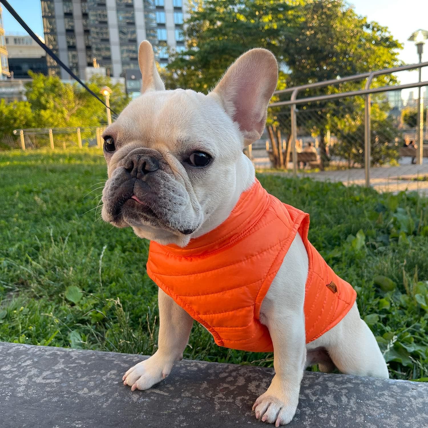 Why Puffer Vest? A unique blend of reliable warmth and lightweight gear. Weighing at less than 3 ounces, roughly three slices of normal sandwich bread, the Puffer Vest is easy-to-wear, easy-to-pack, and easy-to-store. It protects your pup against chilly winds and is water resistant to keep your pup dry from light showers. Its built-in leash attachment lets you go on quick walks without putting on an extra harness and its trendy colors and various sizing options lets your pup wear it with comfort and style.
