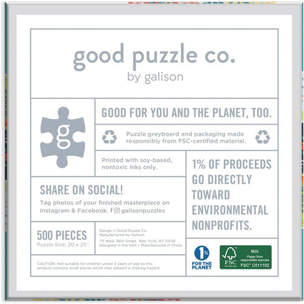 Good Puzzle Co. by Galison features unique art that's perfect for challenging and enjoyable puzzling. Puzzles help many people relax and you'll feel good that this product is made from recyclable materials. Good Puzzle Co. partners with 1% for the Planet donating 1% of proceeds directly toward environmental nonprofits. Good for you and the planet, too.