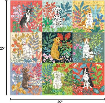 - 500-PIECE PUZZLE – A fun challenge, the Dogs and Flowers 500 Piece Jigsaw Puzzle from Good Puzzle Co. provides days of colorful puzzle entertainment. The completed puzzle measures 20" x 20".