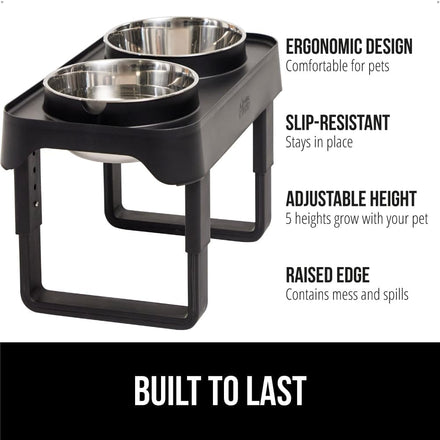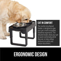 - ELEVATED ERGONOMIC DESIGN HELPS RELIEVE PRESSURE ON JOINTS: ergonomically designed to help provide your pet with a more comfortable mealtime experience; adjustable feeder can be raised to five different heights to grow with your pet; raised feeders can help your pet eat more comfortably and reduce discomfort