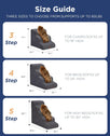 - MULTIPLE STEP SIZES - This dog stair has 3 steps, 4 steps and 5 steps to choose. Our 3-step stairs fits for chair/sofa/bed up to 17inch. 4-step stairs fits for chair/sofa/bed up to 23inch. And 5-step stairs fits for chair/sofa/bed up to 29inch.