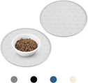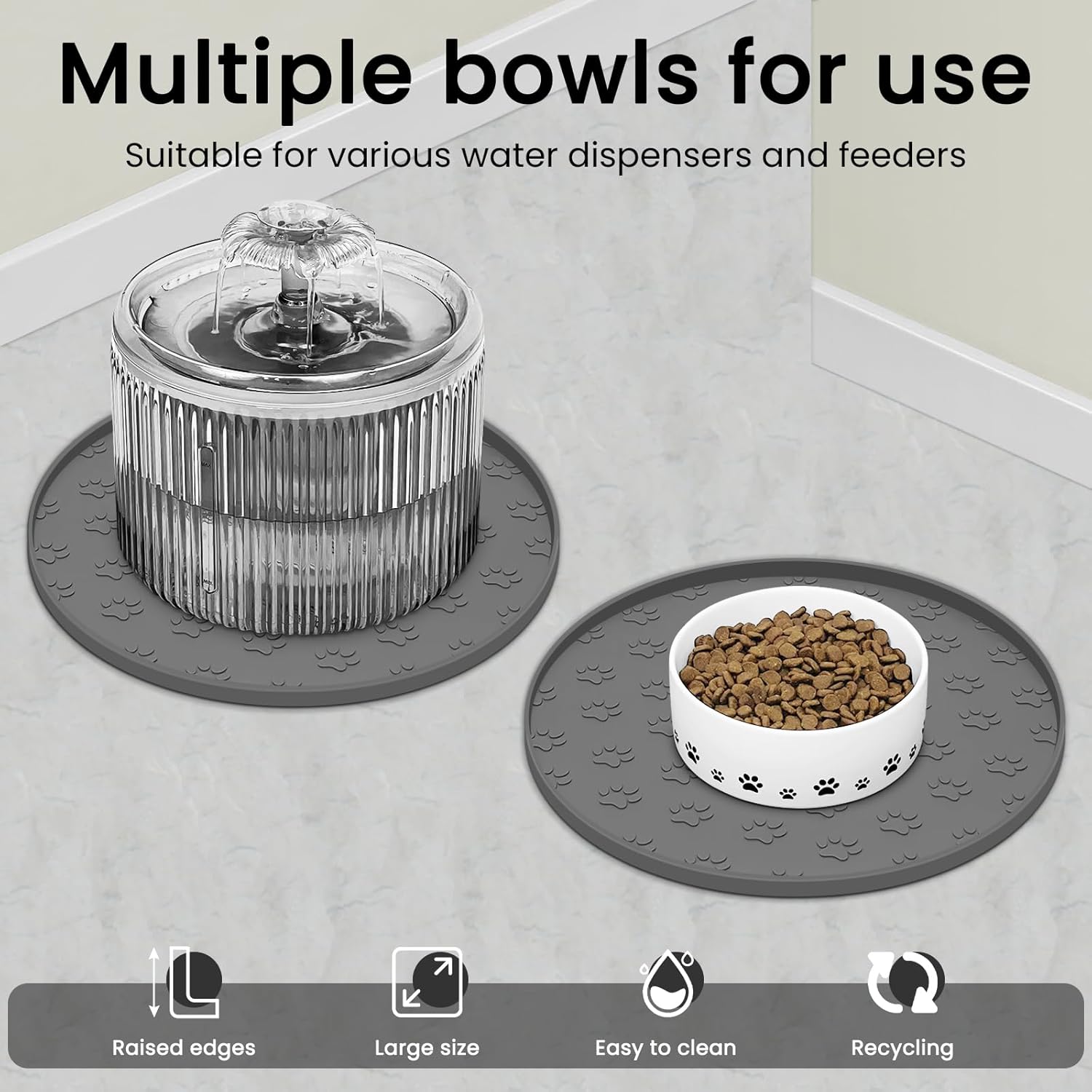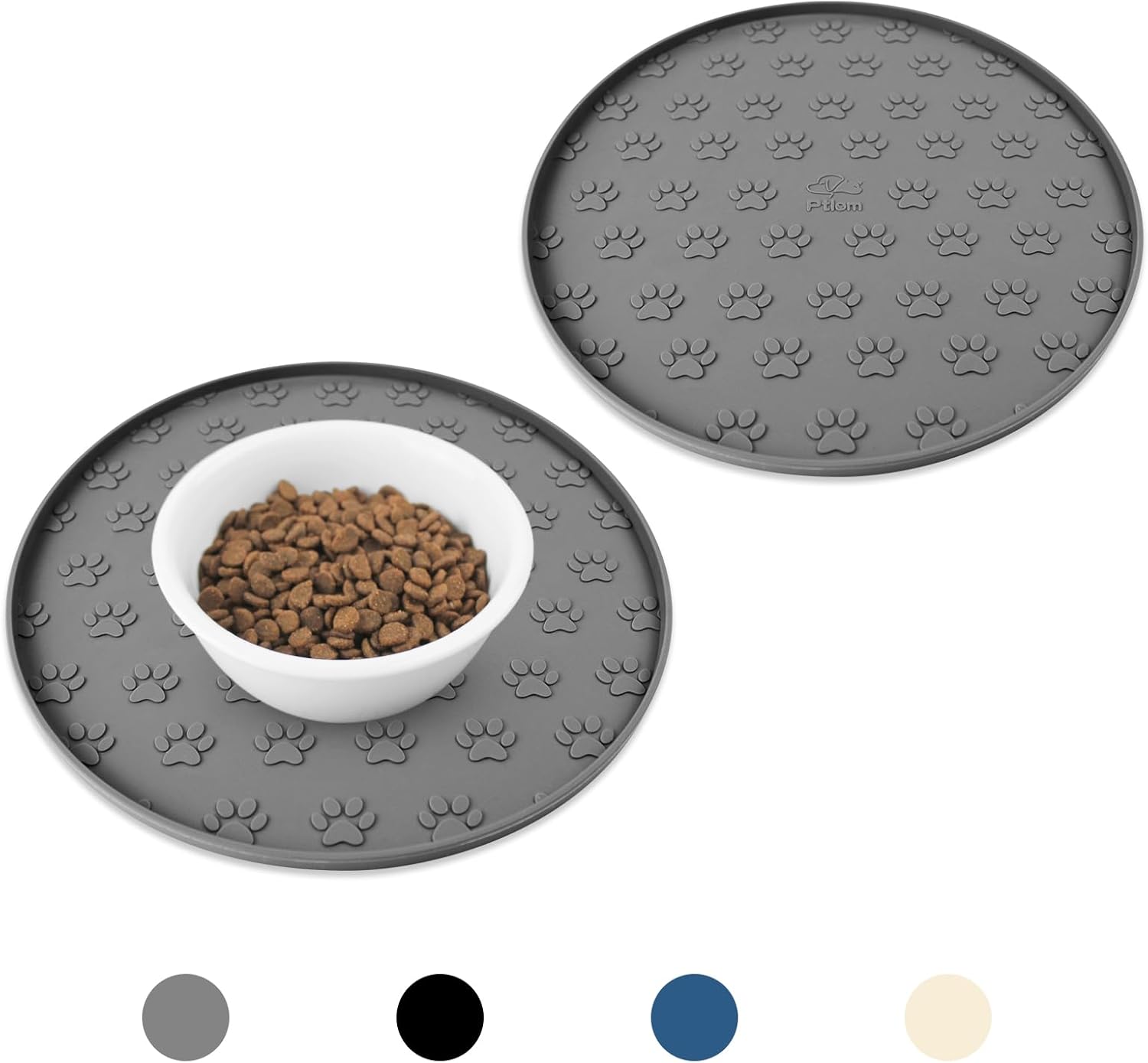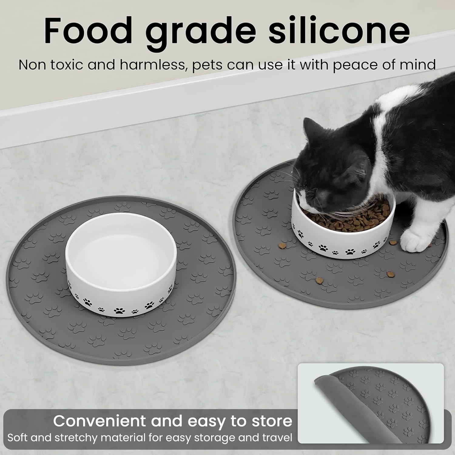 - Product Information: Sold in pairs, each pack contains 2 Grey silicone pet feeding mats- 11" x 11". Suitable for small and medium dogs and cats. Available in 3 colors. Perfect for your pet.