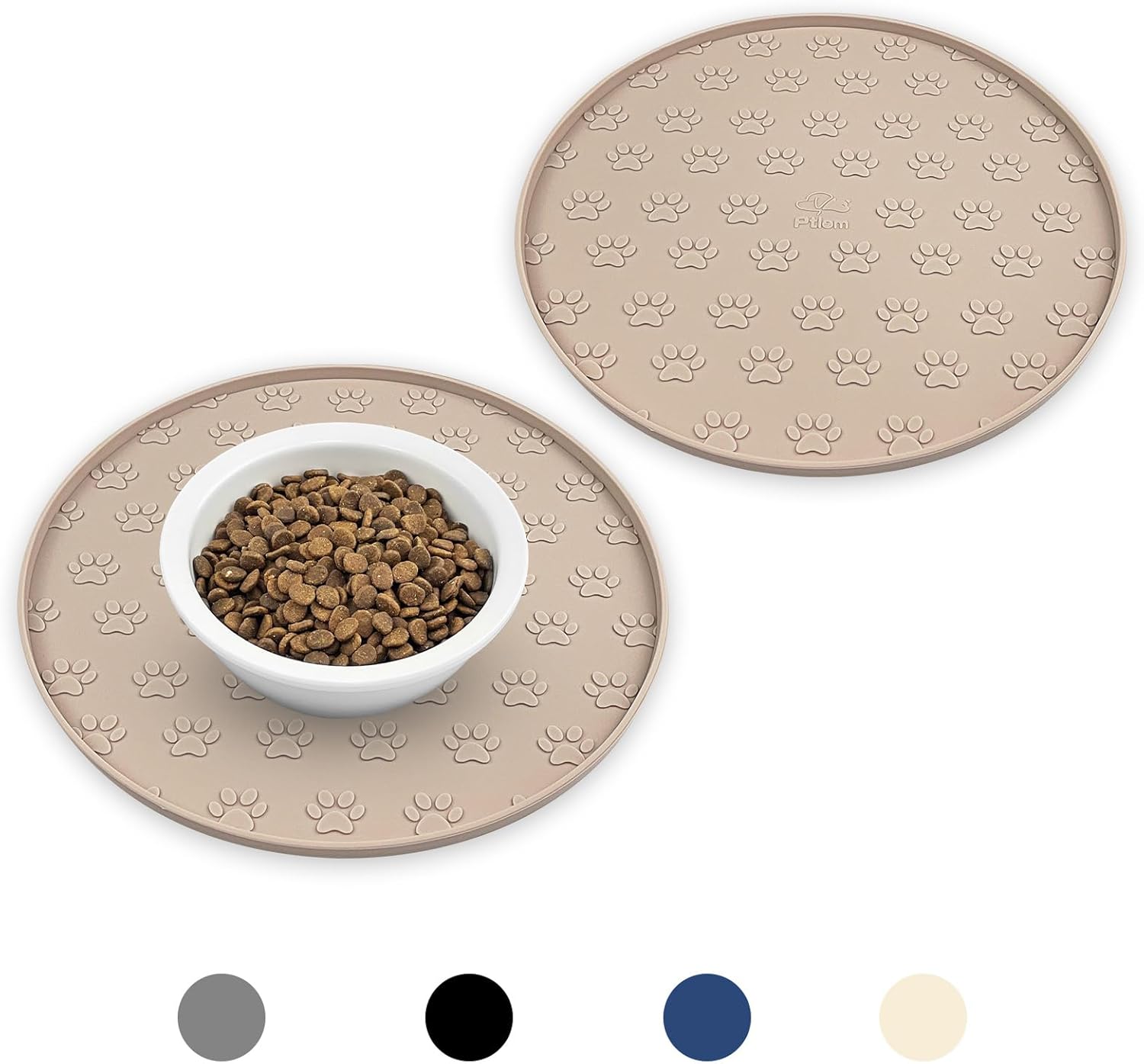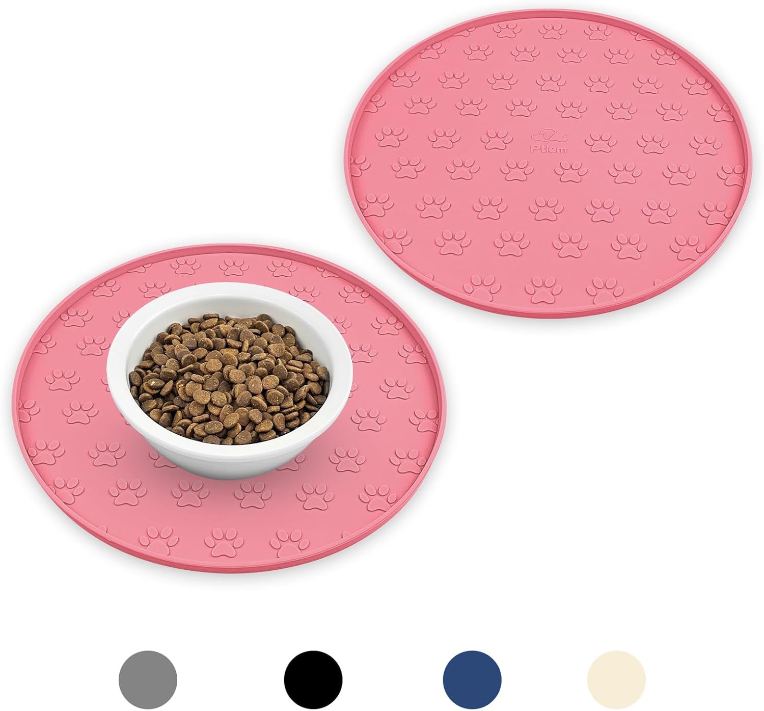 - Design Concept: To improve the quality of life of pets and owners. Many cute paw patterns are designed on each placemat. Excellent paw print raised anti-slip texture can effectively prevent the water and food bowl from being pulled and slipped during pet feeding.