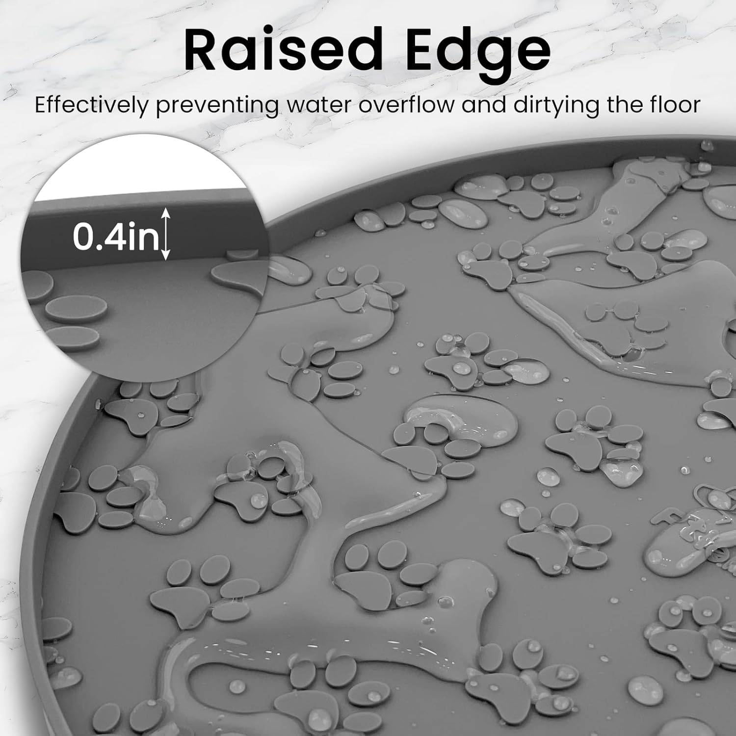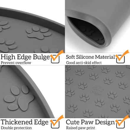 - Function: The raised edge design around it can prevent the food or the water on the placemat from overflowing and soiling the floor, reducing your cleaning time. You don't have to worry about being annoyed by stepping on food or water scattered on the floor. Besides, this placemat is soft and foldable for easy storage and carrying.
