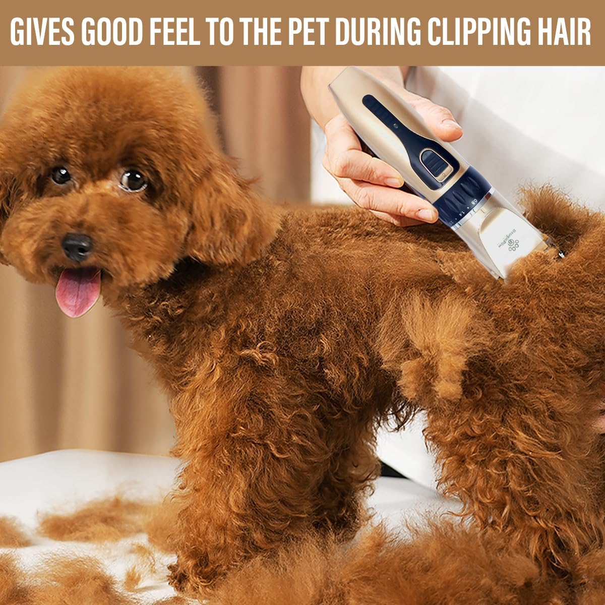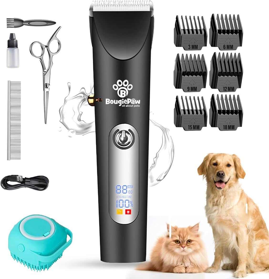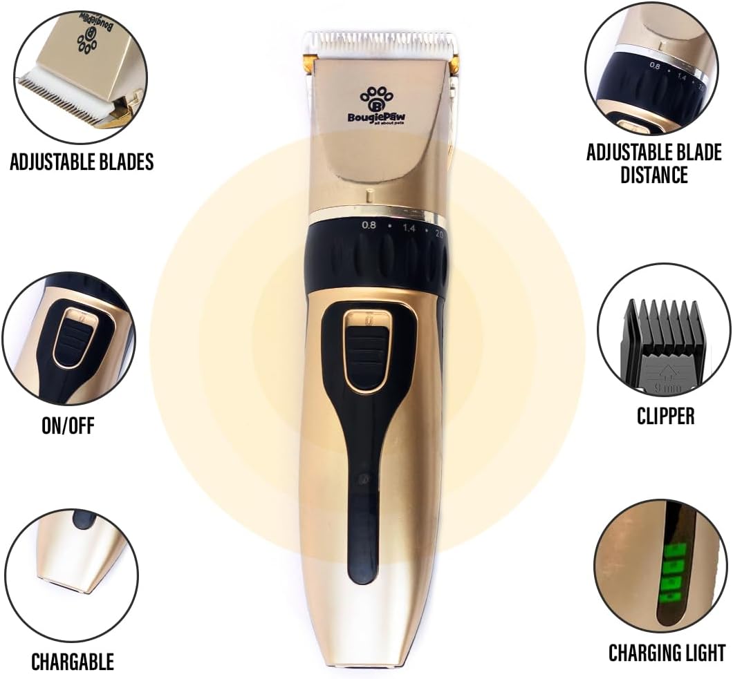 Now it's time for the main grooming! Use the BougiePaw cordless clippers to trim your dog's fur to the desired length. Work carefully and patiently, so your pet can enjoy a smooth and stress-free grooming session.