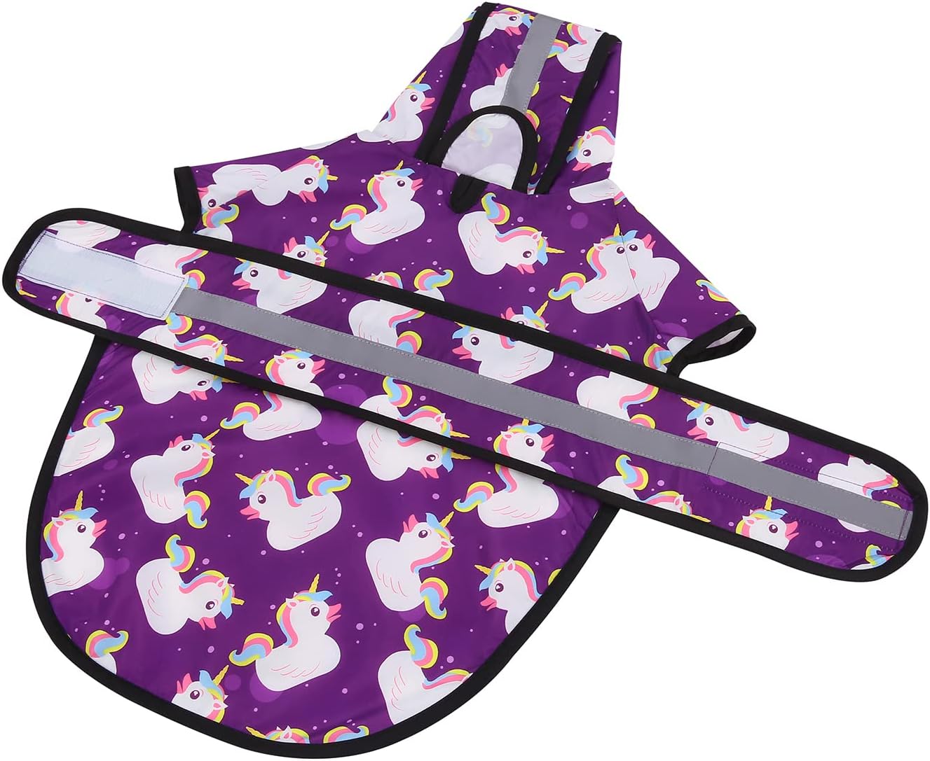 HDE Dog Raincoat Hooded Slicker Poncho for Small to X-Large Dogs and Puppies Purple Unicorn Ducks - L