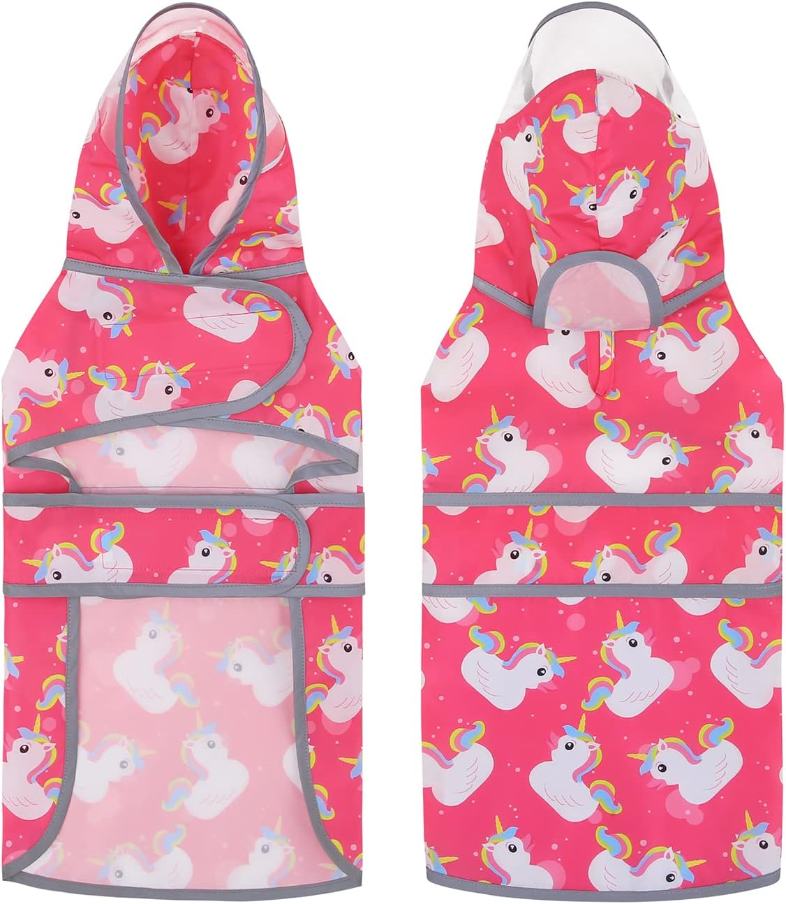 HDE Dog Raincoat with Clear Hood Rain Jacket Poncho for Small Medium Large Dogs Unicorn Ducks Pink - S