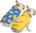• Reversible design: Two styles in one slicker poncho! Flip over dog rain gear and get a new look. Your doggie may go from a solid color raincoat to a quirky rubber ducky or floral pattern dog raincoat.