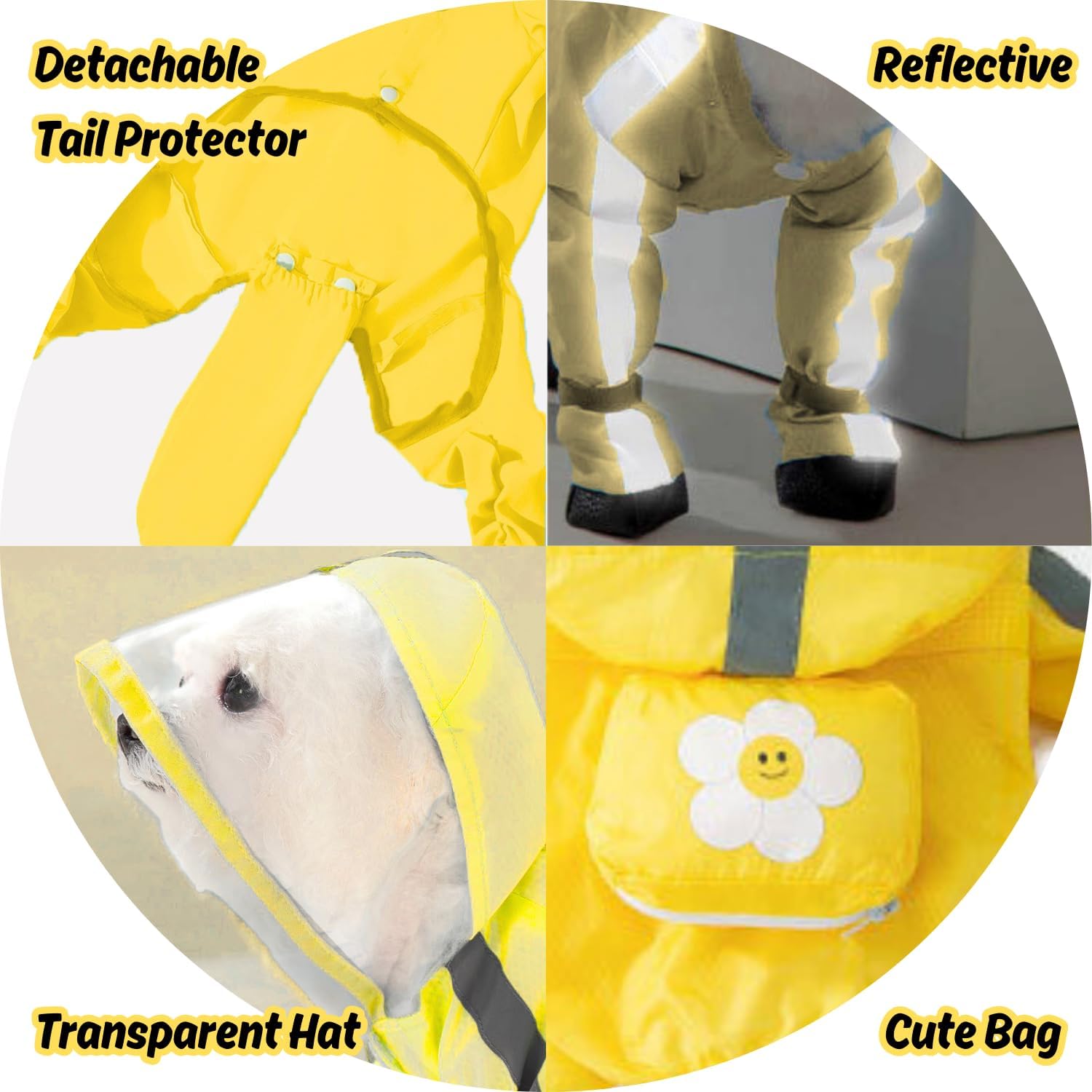 • REFLECTIVE & SAFETY: Super bright reflective strips are used on the hoodie and leg of the raincoat, enhancing your dog great visible and safe,easy to be seen when walking at night.