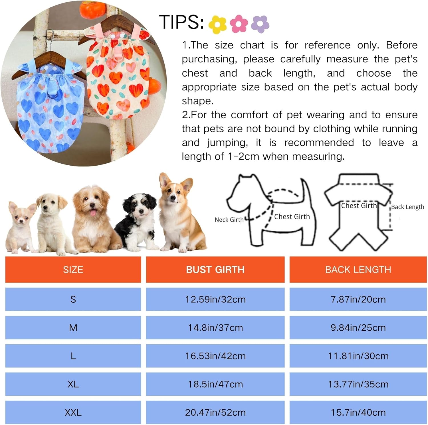 - Size Chart: Pet dress is suitable for most small dogs, please measure your dog's bust, neck, back size before buying, please use a tape measure and leave 2 finger width between the dog's neck circumference, to make sure your dog doesn't feel tight.
