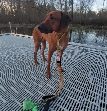 - Patriotic Customization with USA Flag Patch: Includes a removable 1.5-inch-wide hook-and-loop USA flag patch, adding a personal, patriotic touch to your dog’s gear. This durable bungee leash pairs functionality with style, making it an ideal choice for training, walking, or daily use with large and medium breeds.