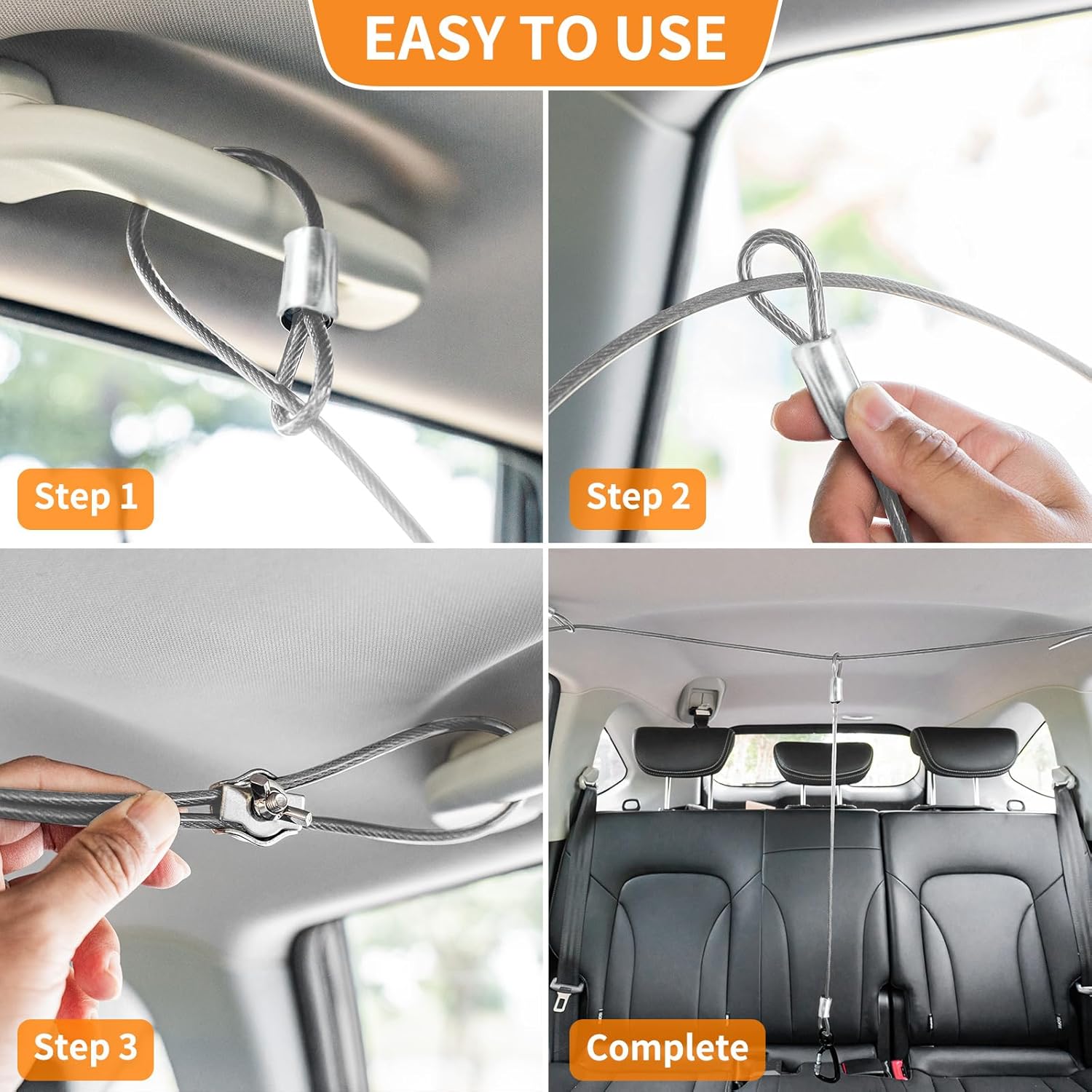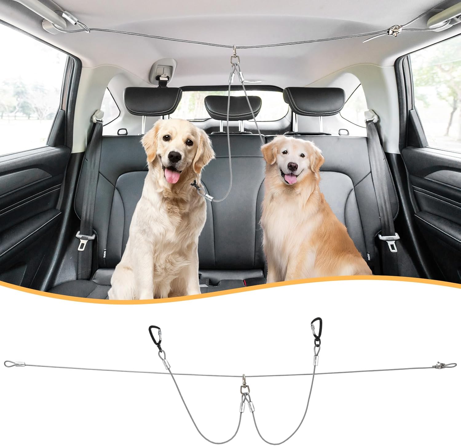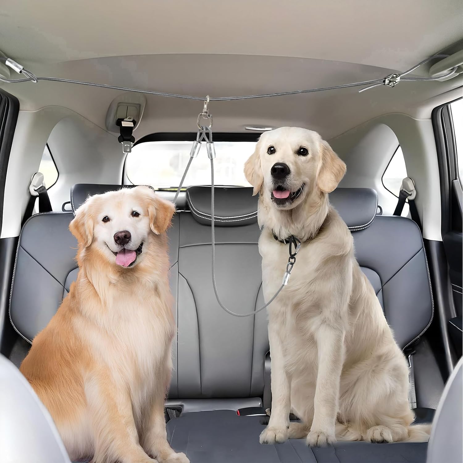 - DOG CAR LEASH SYSTEM:The dog leash for car is made of coated wire rope and is securely stitched for durability. The leash also ensures excellent protection for your dog when attached to the truck bed or backseat of the car, provides safety while you are driving