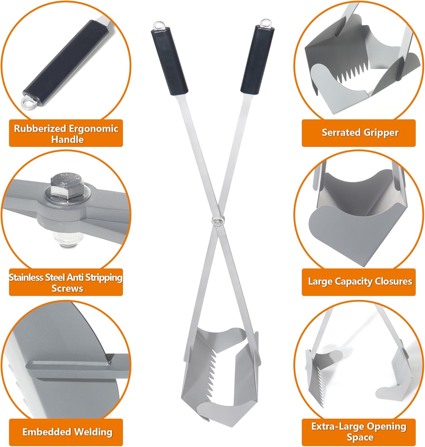 - Multipurpose use: our poop scooper is designed with huge flat and claws at the end, it is efficient for disposing of garden yard waste, leaves cleaning tool tongs, pet waste, etc. on lawns, pavements, etc. An ideal dog housebreaking supplies