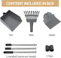 Heeyoo Pet Poop Tray and Rake Pooper Scooper Kit As pet parents, we always face a challenge with the pet’s pooper. Heeyoo metal pet poop tray and rake provides a convenient and comfortable way to clean easier and quicker. We use upgrade clip-on interlocking design, no more spinning around or easy dropping, one person can assembly and disassembly in one minute. Made of rustproof metal material, you only need clean by hose off after using. Package: 1 metal tray 1 metal spade 1 metal rake 1 pc link 9 stainless steel tubes