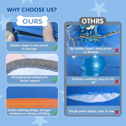 - Easy to clean: The detachable shell allows the dog to easily keep it clean and sanitary even when playing in the muddy outdoors. At the same time, we have prepared several spare plugs and air pumps, so you can inflate it quickly whether you are at home or on the go, just enjoy it with your dog!