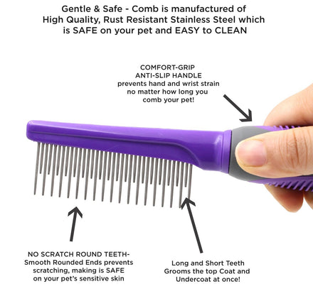 - YOUR PET WILL NOT ONLY LOOK GOOD BUT 'FEEL' GREAT TOO! - Our long and short teeth comb grooms and massages for a healthy coat, increasing blood circulation and leaves your pet's coat soft and shiny.