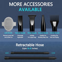 - 【Complete Accessory Set】Includes 4 interchangeable nozzles and a grooming brush to customize drying for any pet type. The ergonomic handle is compact and lightweight for easy portability. Plus, we’ve added a bonus bathing brush for seamless wash-and-dry sessions.