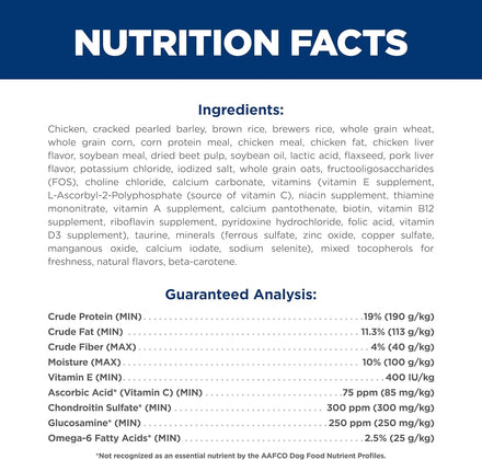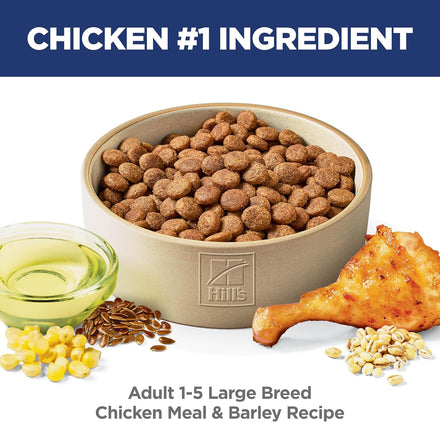 Big dogs have their own set of nutrition needs, so Hill's Science Diet Large Breed adult dog food is specially formulated to fuel the energy needs of large breed dogs during the prime of their life. Made with high-quality, easy-to digest-ingredients, this food made for fully grown large dogs supports the building of lean muscle with high-quality protein, as well as glucosamine and chondroitin for healthy joints & mobility. A balanced blend of omega-6s and vitamin E nourishes your dog's skin for a healthy, shiny coat. There’s more to love with the new look of Science Diet. Some of our products also have new names, new kibble shapes & new formulas.