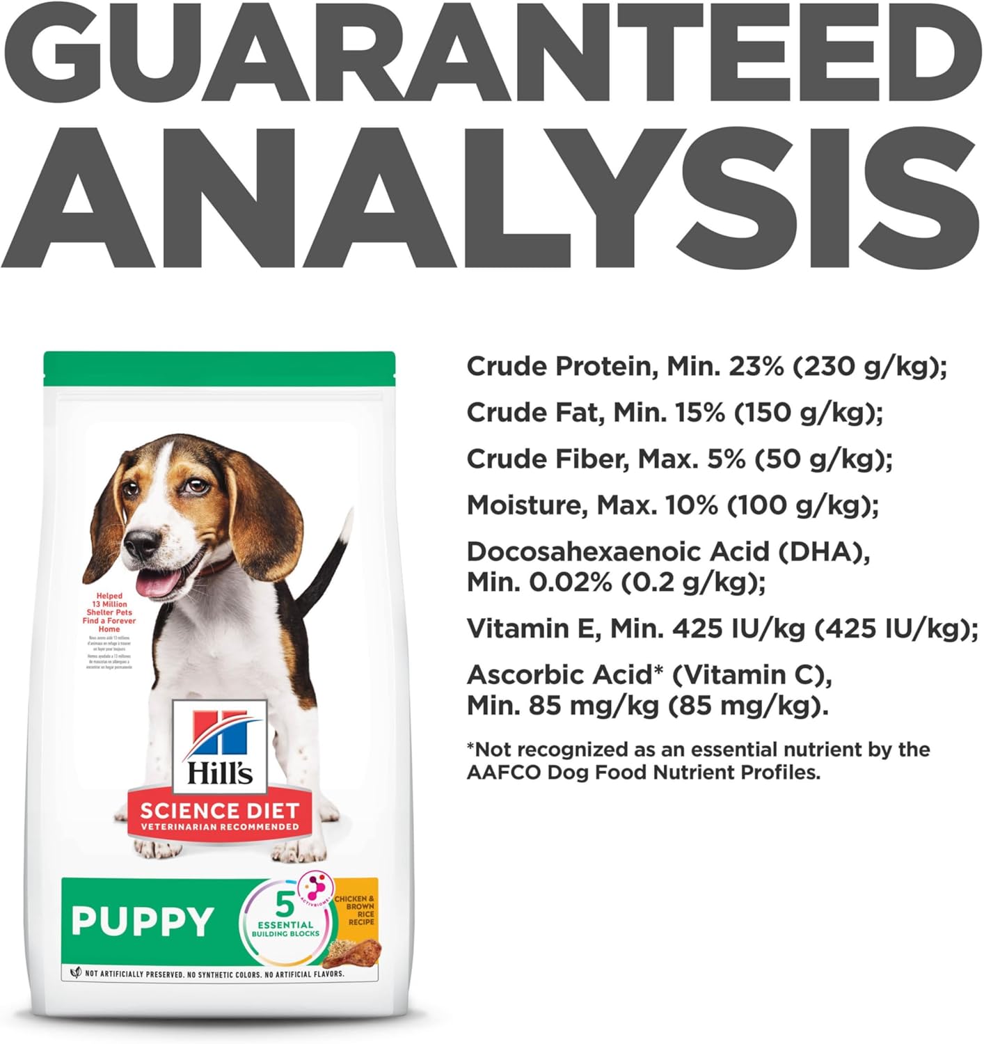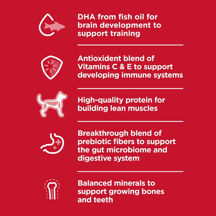 Hill’s Science Diet Puppy dry food is rich in flavor & carefully formulated with vital nutrients to support 5 essential building blocks for lifelong health, so they get the best start in life & grow to their full potential.