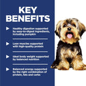 - Provides high quality protein to maintain lean muscle in small breed dogs