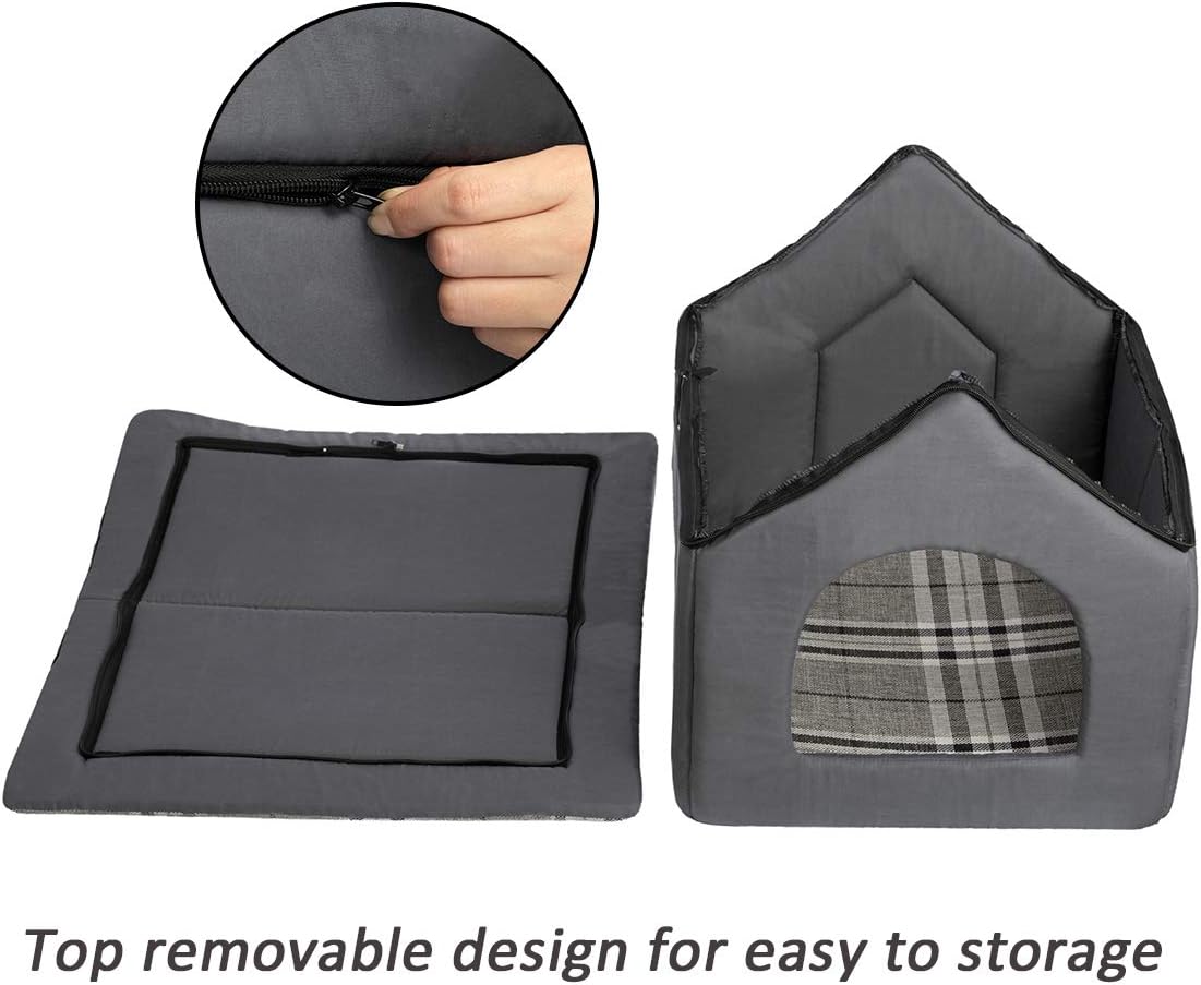 - 【Warm & Soft】 Hollypet House is mainly made in luxurious polyester, filling: high elastic sponge. The cushion inside is thick sponge, very soft and warm.