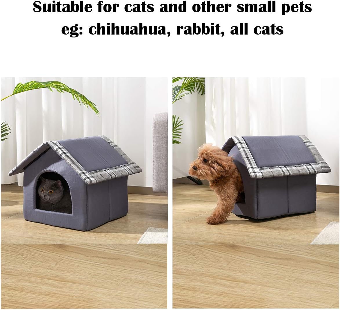 - 【Decorate Style】Cute cabin-shaped cat sleeping bed is very soft and breathable, aesthetic and functional design.