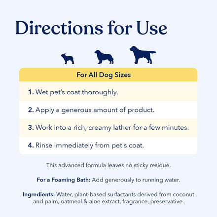 - So Soft, Clean, And Shiny - This wash uses the hydrating properties of soothing oats and aloe that replenishes the skin’s natural moisture while conditioning the fur. Prevent matting and irritation, and keep your pup happy with each bath.