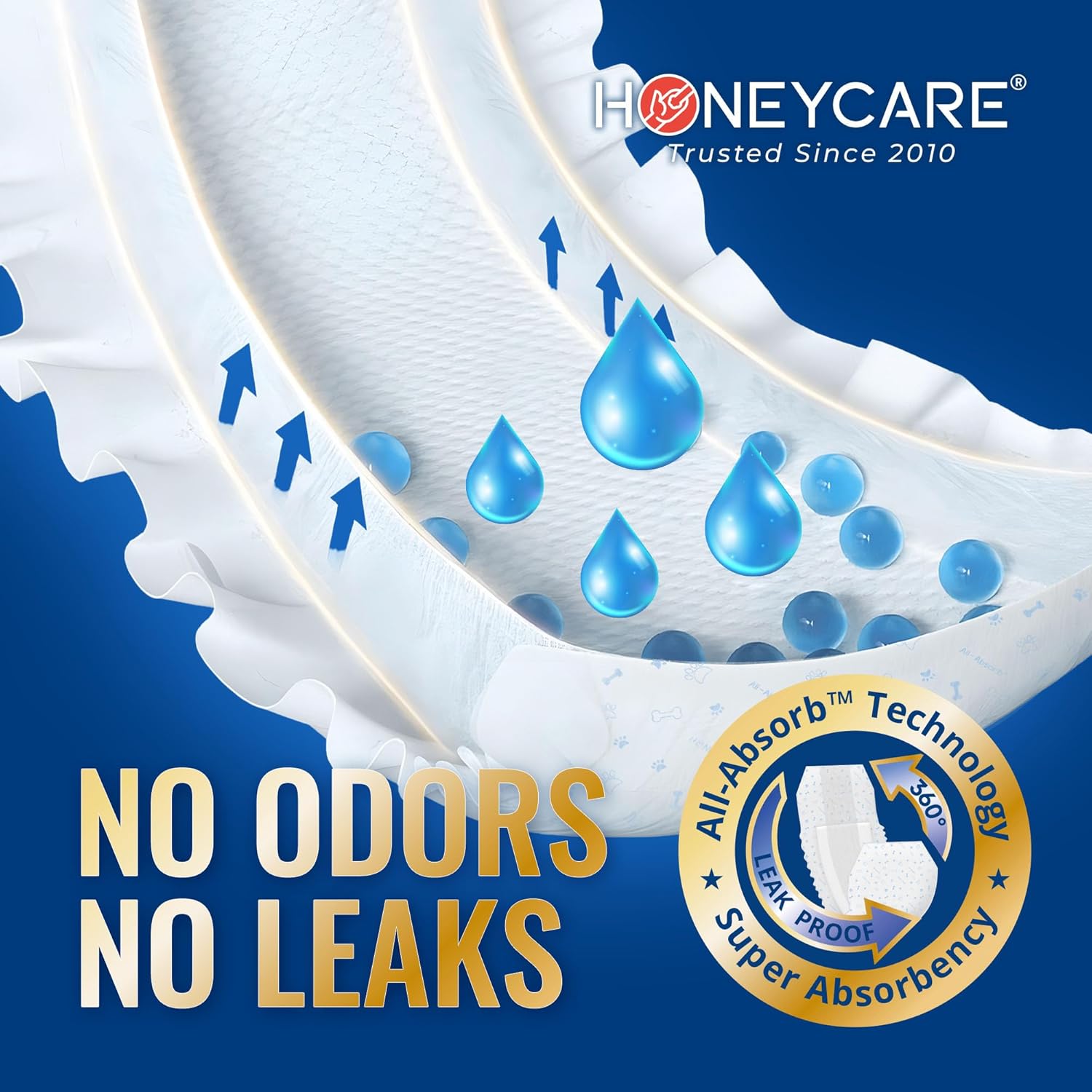 - DRY AS A BONE - All-Absorb Male Wraps have 360 degree leak-proof protection barriers, and a super absorbent core which prevents any unwanted spills or accidents where you don't want him to mark. Designed to fit small sized male dogs with a 12-18 inch waist