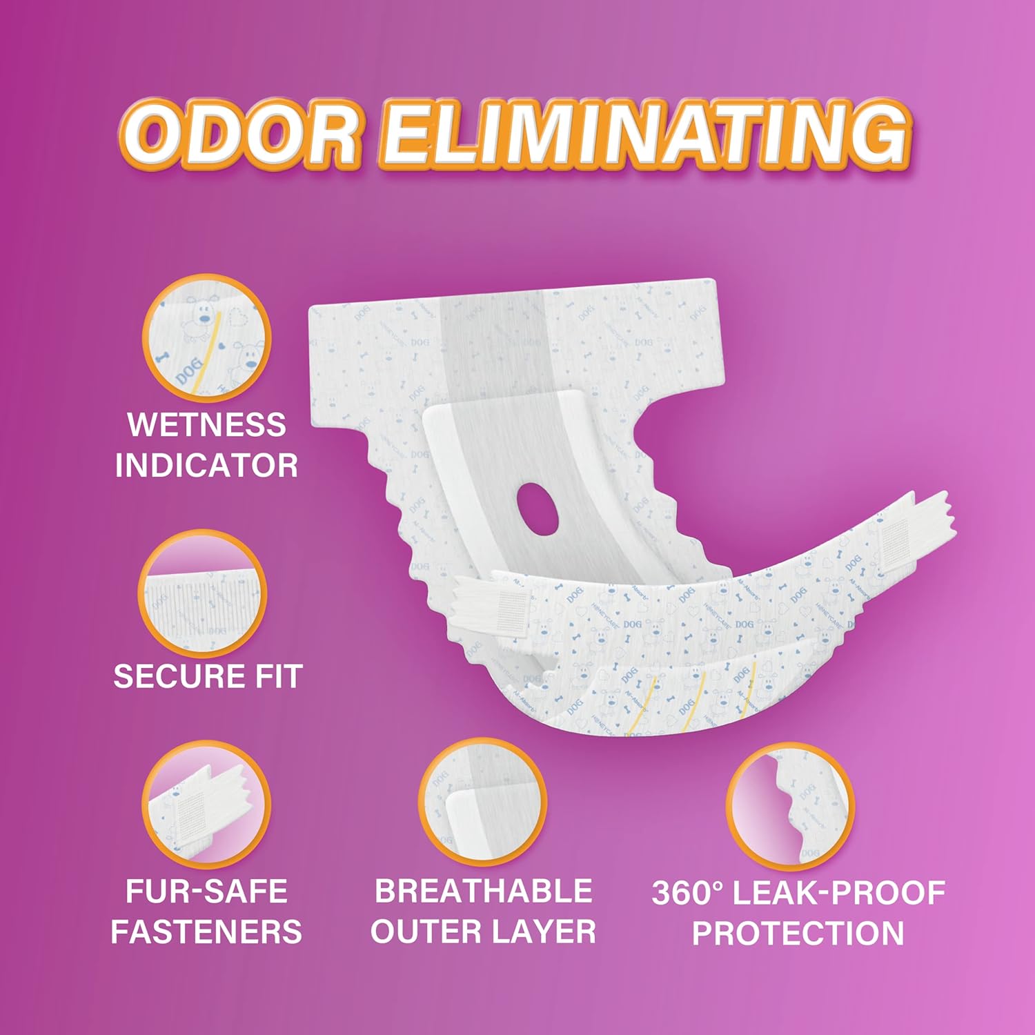 - Cómodos como un insecto: los pañales All-Absorb son seguros para la piel, mientras que proporcionan un ajuste seguro con cierres reajustables para ayudar a garantizar que la metas bien, sin pegarse a su pelaje