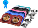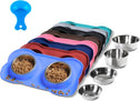 - Safe Food Grade Material - Our dog bowls are made of food grade stainless steel and BPA Free silicone mat, This is a fantastic dog cat puppy food and water dish to prevent messy eating and drinking! Handy all in one feeder for messy pups, new puppy or Small Medium Large dogs.