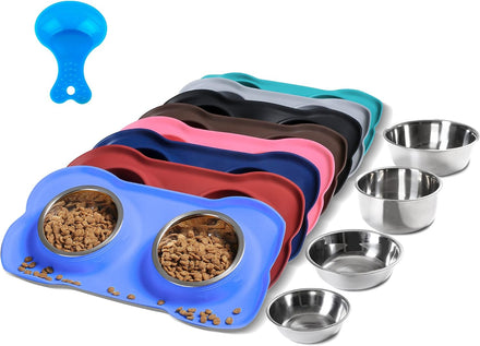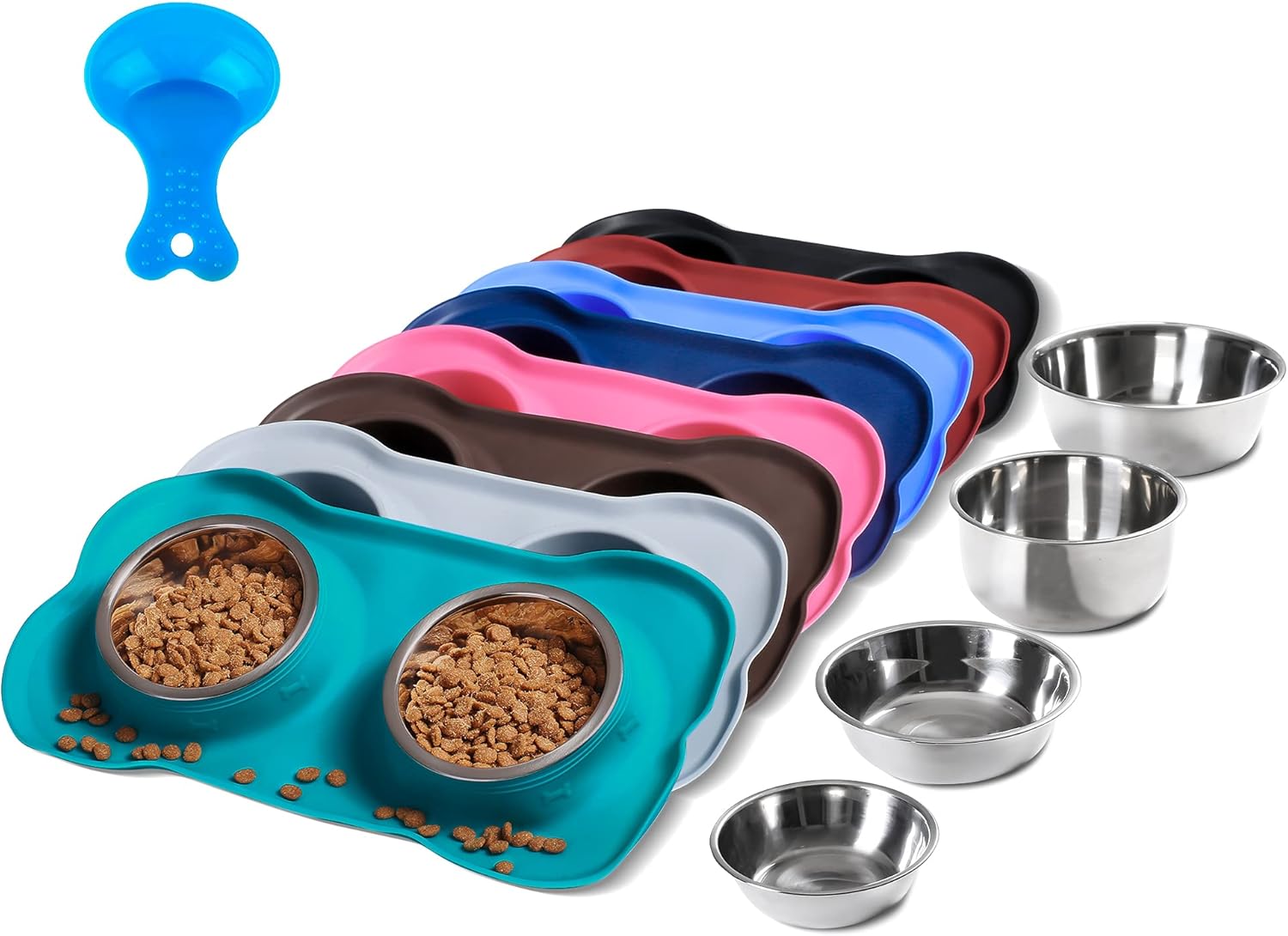 - Double Dog & Cat Bowls - Set of 2 Stainless Steel Dog & Cat Bowls for messy eaters, one for water and another for food. The bowls is made of high quality food grade stainless steel which makes it rust resistant and anti-corrosion. The non slip stainless steel pet bowl is durable for long-term use and healthy for your beloved pets especially for holding hot food, and easy to clean, easy to detachable from silicon mat and dishwasher safe.