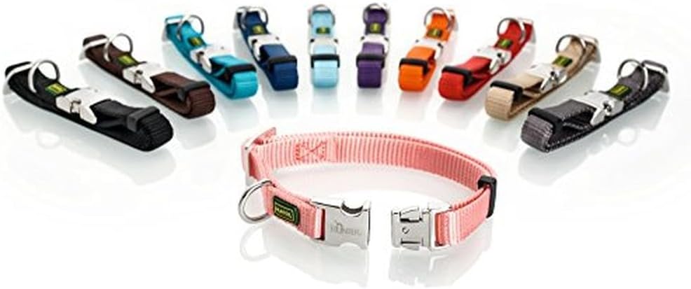 These HUNTER nylon collars are the classic and original best selling dog collar with aluminium clip. They look wonderful on any dog and make a standard nylon collar look special. The nylon is a best on the market so is durable as well as fashionable. There are matching leads and harnesses so you make a lovely set to make your dog proud to be seen in.