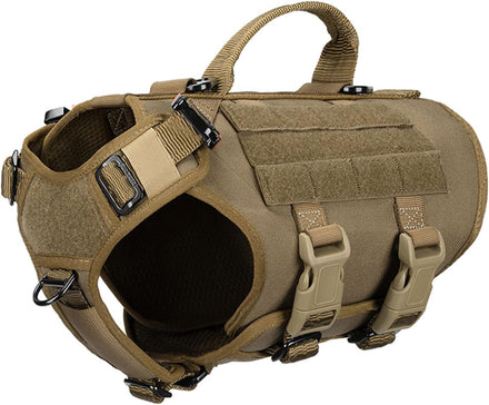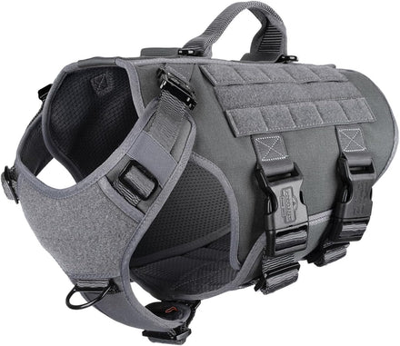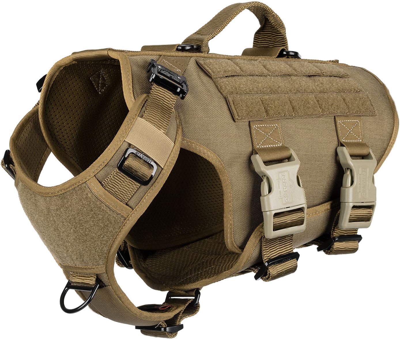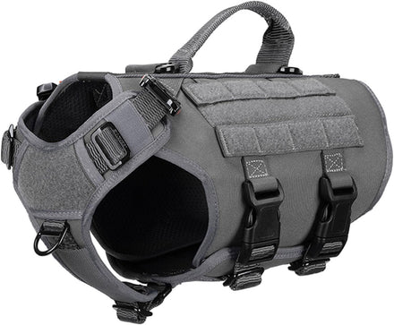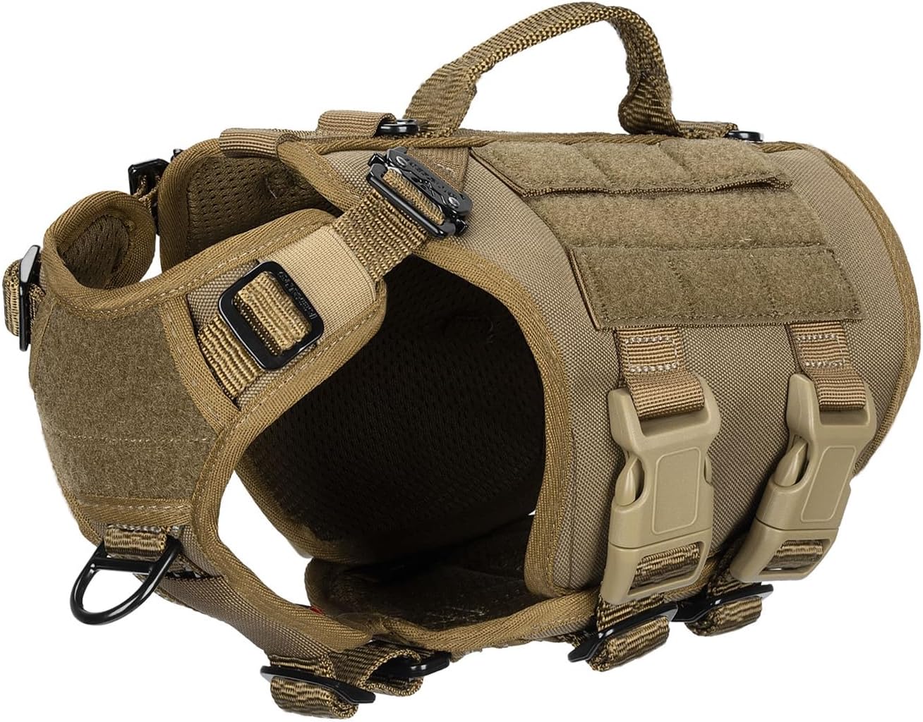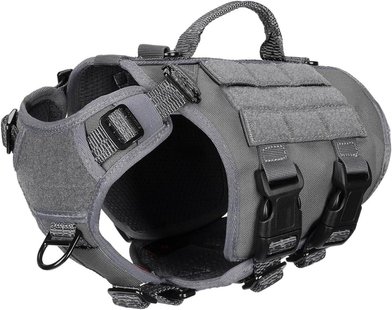 - [Molle /PALs Compatible ] :Two 1" Strips of Molle (XS:3 x Hook & 2 x Loop ; Small:4 x Hook & 2 x Loop ; Medium/Large/X-large: 5 x Hook & 2 x Loop ) are Sewn Onto each Side,Allowing Your Dog to Carry Gears in Training / Daily Walking/Adventure Hiking, Compatible with Molle /PALs bags,You Can Aslo attach a Dog Bowl,Water Bottle, and toys using D-shaped carabiners (carabiners not included)