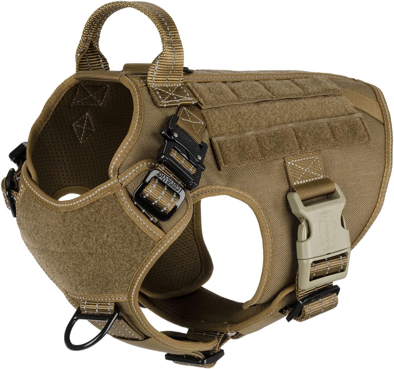 - [Molle /PALs Compatible ] :1" Strips of Molle ( Small: 3 x Hook & 2 x Loop ;Medium:4 x Hook & 2 x Loop,Large/X-large: 5 x Hook & 2 x Loop ) are Sewn Onto each Side,Allowing Your Dog to Carry Gears in Training / Daily Walking/Adventure Hiking, Compatible with Molle /PALs bags,You Can Aslo attach a Dog Bowl,Water Bottle, and toys using D-shaped carabiners (carabiners not included)