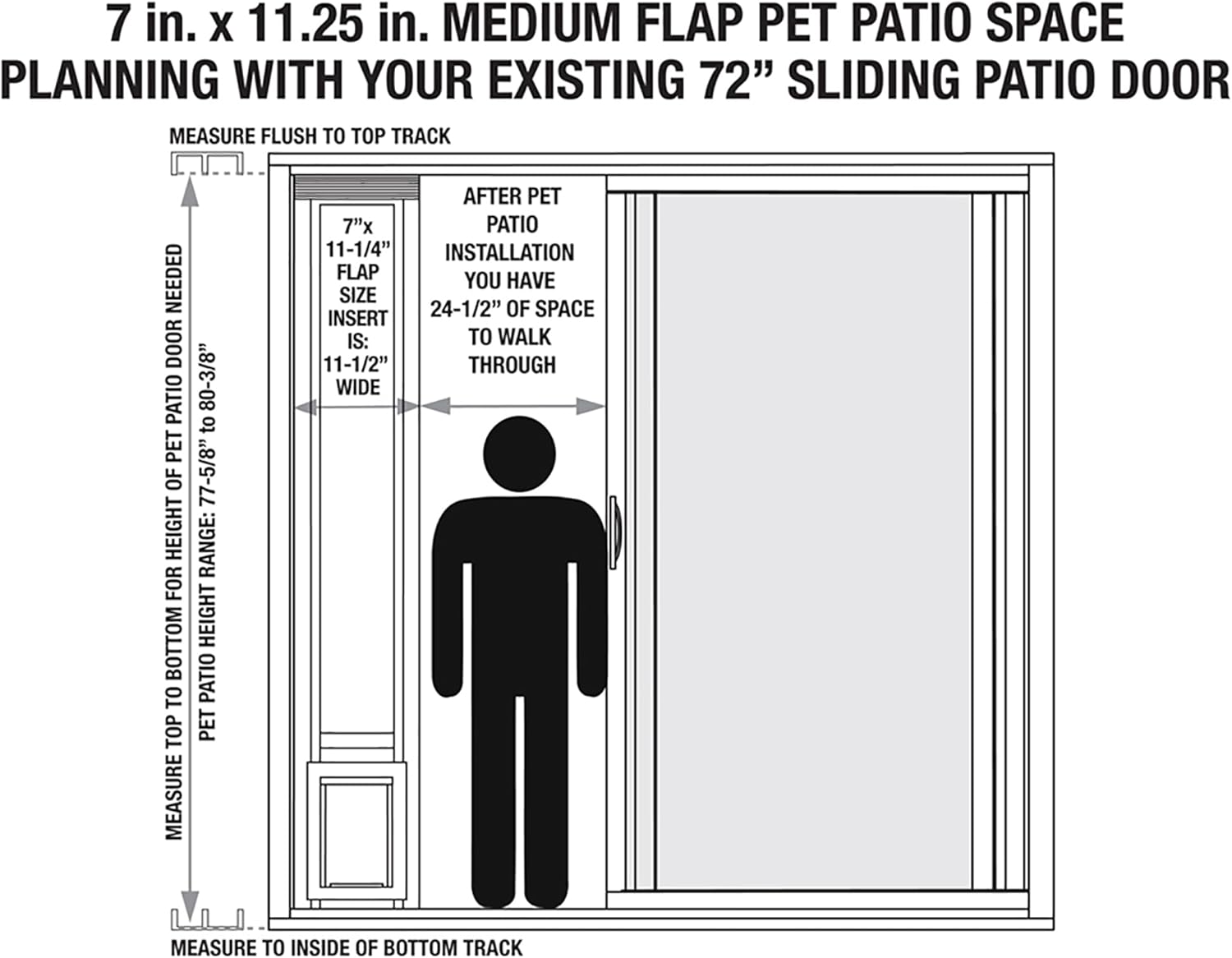 - Adjustable Height: 77-5/8" To 80-3/8" for ALUMINUM sliding patio doors only. To ensure ordering correct height, measure flush at top track to the inside bottom track of your ALUMINUM sliding patio door frame. Please review measurement instructions and video before ordering.