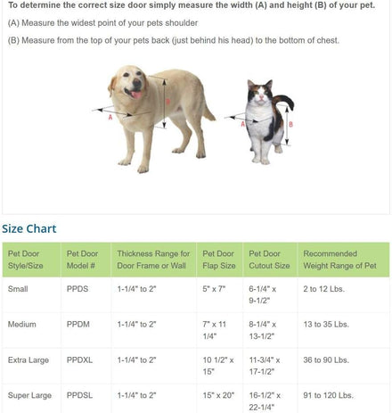 We developed a sturdy thermoplastic (ABS) frame; a see through poly vinyl flap; a floating sill to insure good closure; and a strong molded ABS lock-out slide to restrict the pet's movements when necessary. Then we made it 4 sizes for pets up to 120 pounds. And with a tamper proof mounting system and easy installation, it's the most economical pet door in the industry.