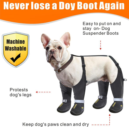 AINTI-LOST ASSURANCE: Our suspender boots for large dogs designed with adjustable straps, all 4 leggings connect together to ensure that the small dog boot leggings don't slip off and won't get lost. Suitable for all seasons, protects dog's paws from hot pavement in summer and snow, salt and cold temperatures in winter.