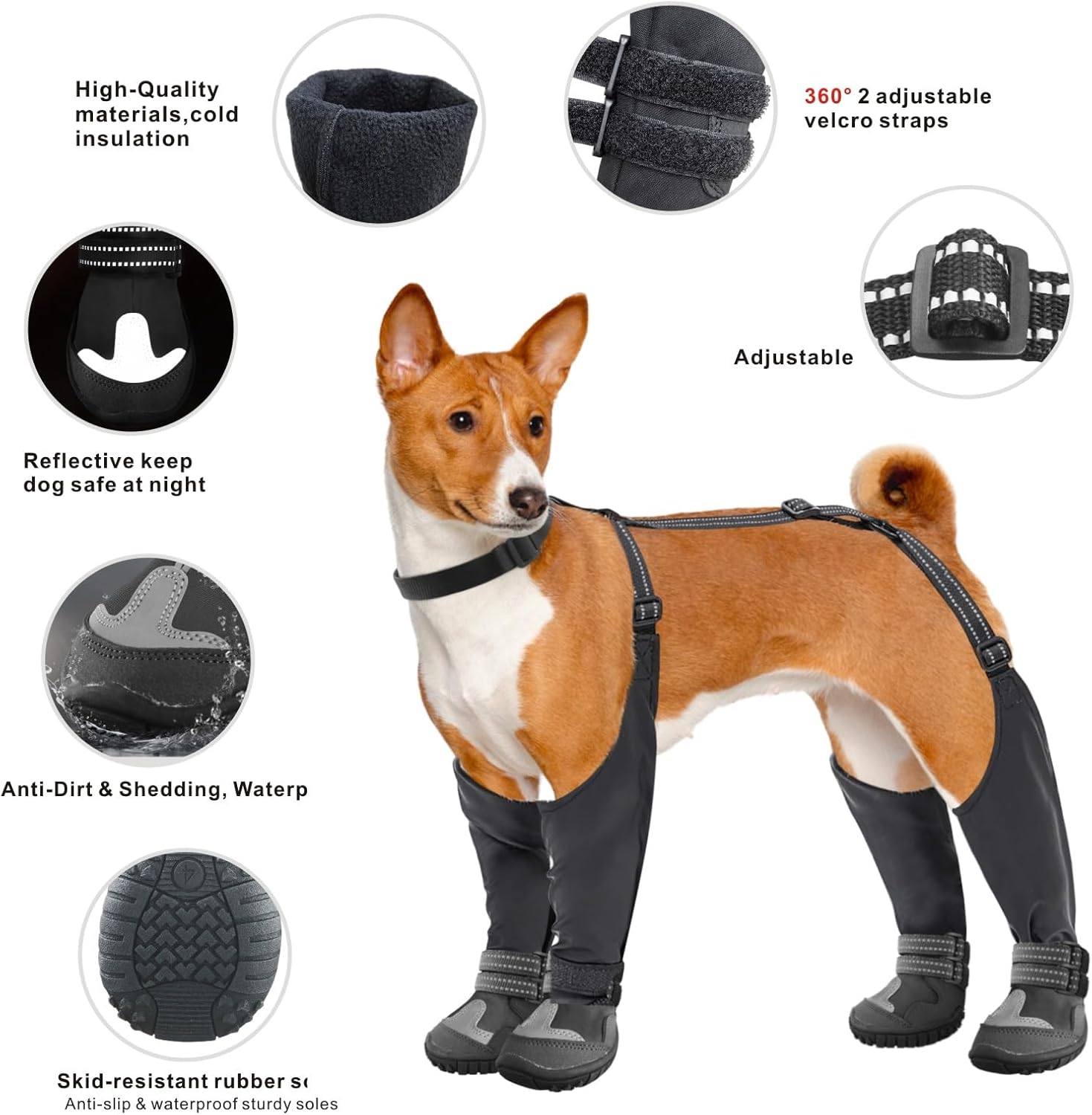 【Waterproof, Anti - Slip & Durable】: These dog winter boots with suspenders upper are made of high - quality elastic waterproof thick fabric; feature non - slip soles with rubber dots for traction. Dog snow boots are cotton - lined for comfort and to protect from nail punctures. Plus, whether walking on wet pavements or ice sidewalks, keep your pup comfortable and secure.
