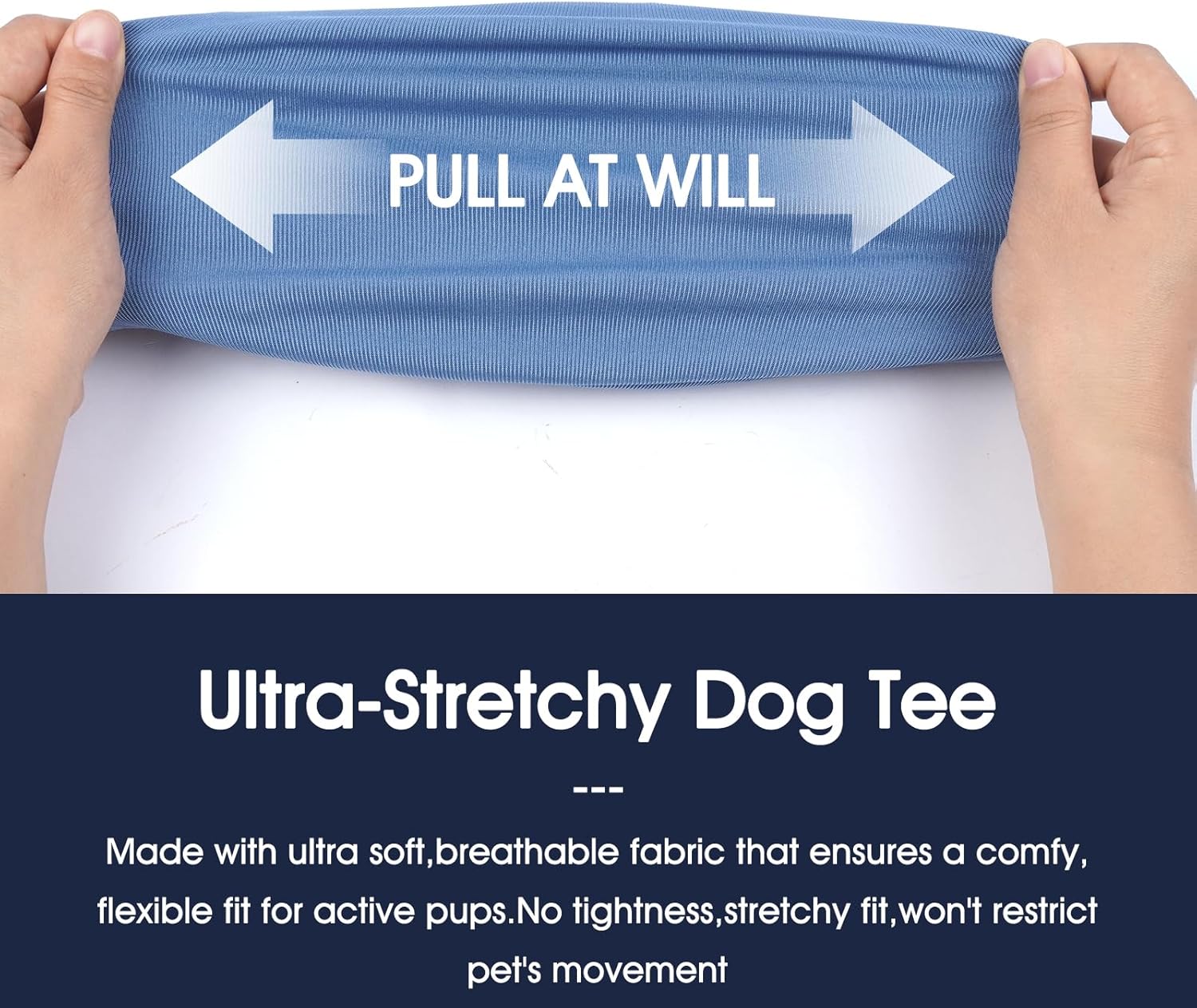 - Stretchy Fit: With a stretchy construction, this dog tshirt offers a good stretch that doesn't restrict movement. It hugs your dog's body snugly yet allows for complete freedom to run, jump, and play. Perfect for active dogs to enjoy outdoor fun freely