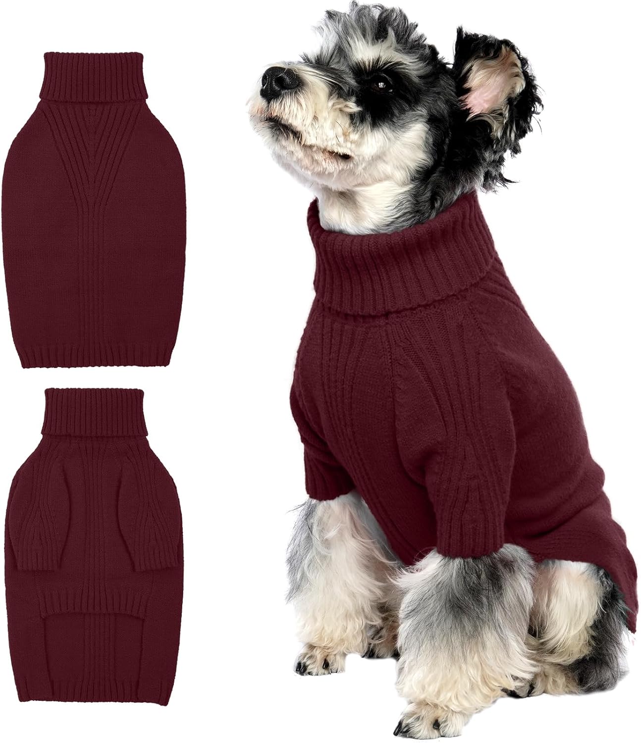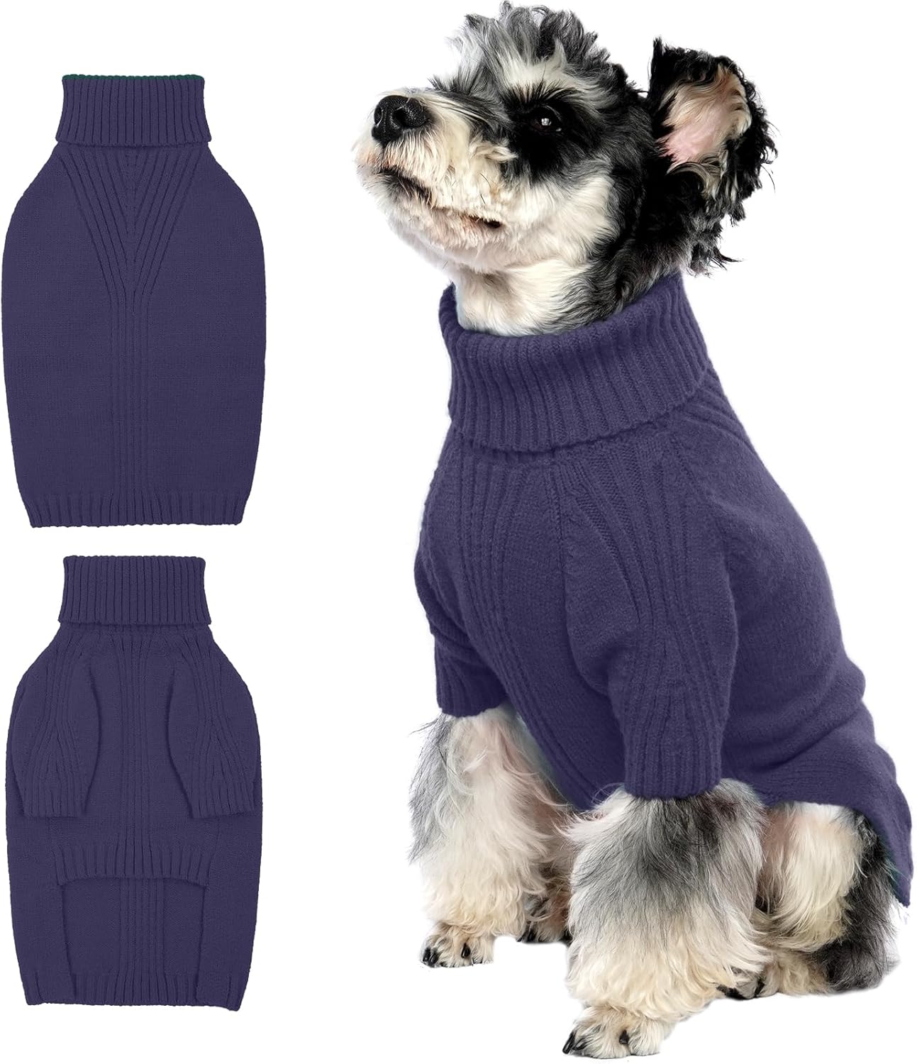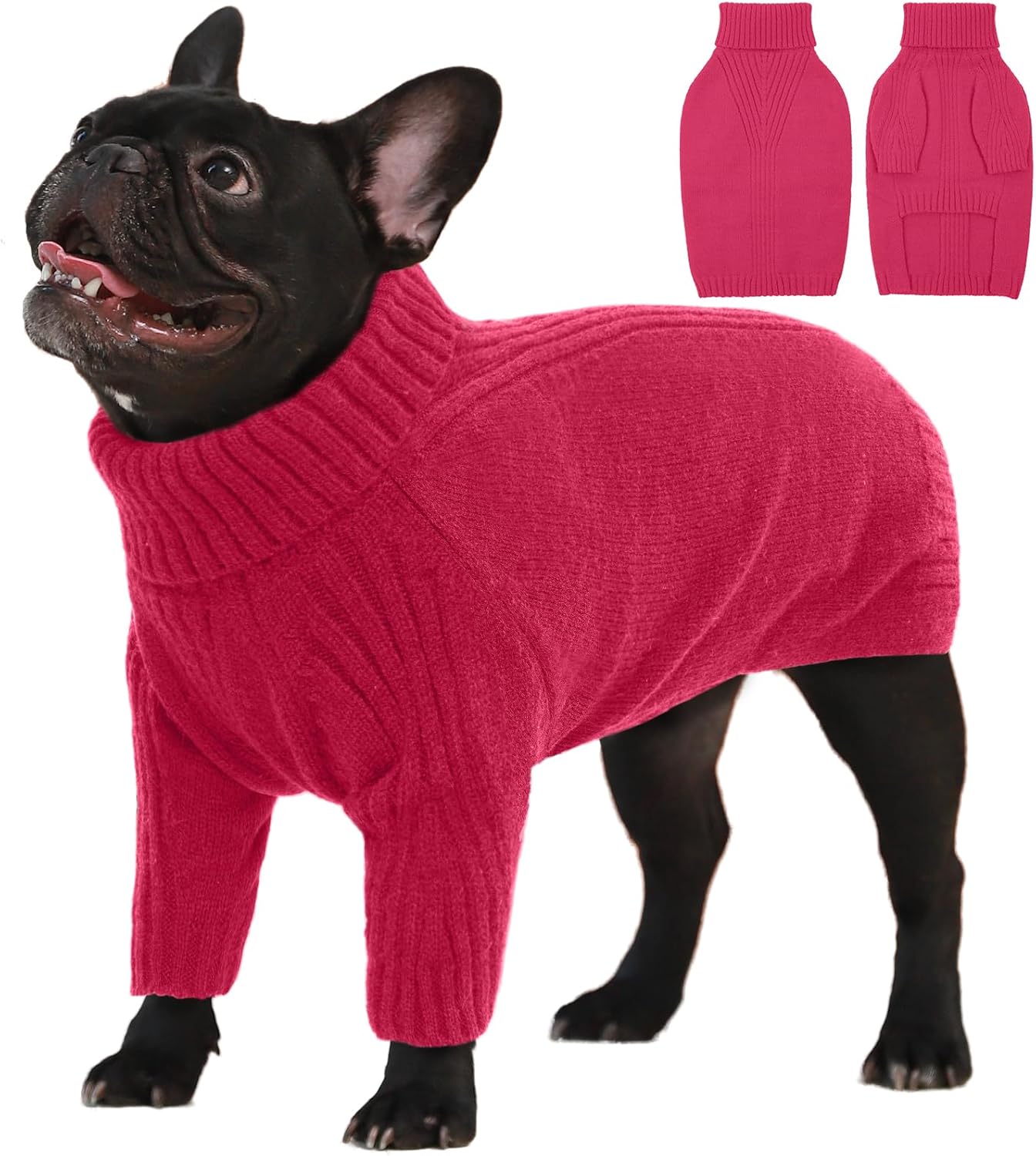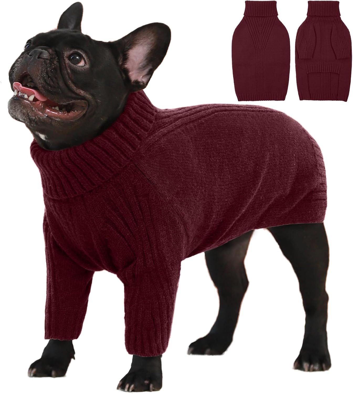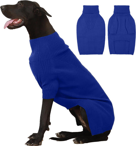 Turtleneck Dog Sweater with Sleeves: This knit sweater for dogs with turtleneck design that can fully wrap your pet's neck, chest and belly snugly.Cut higher in the belly for easy potty breaks,pullover design makes it easy to put on and take off