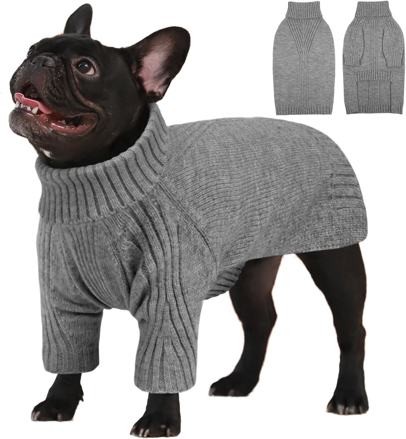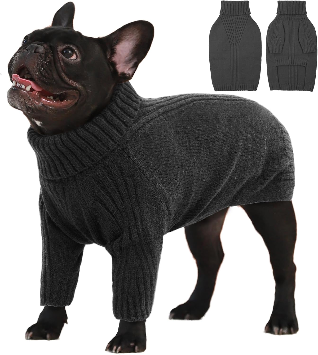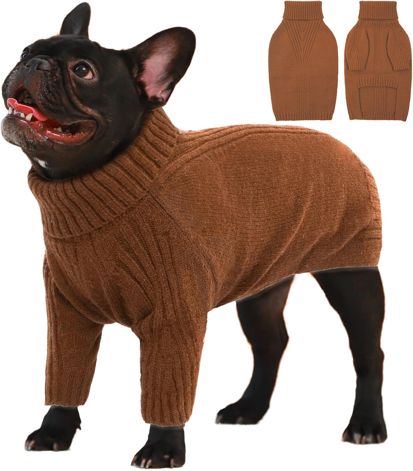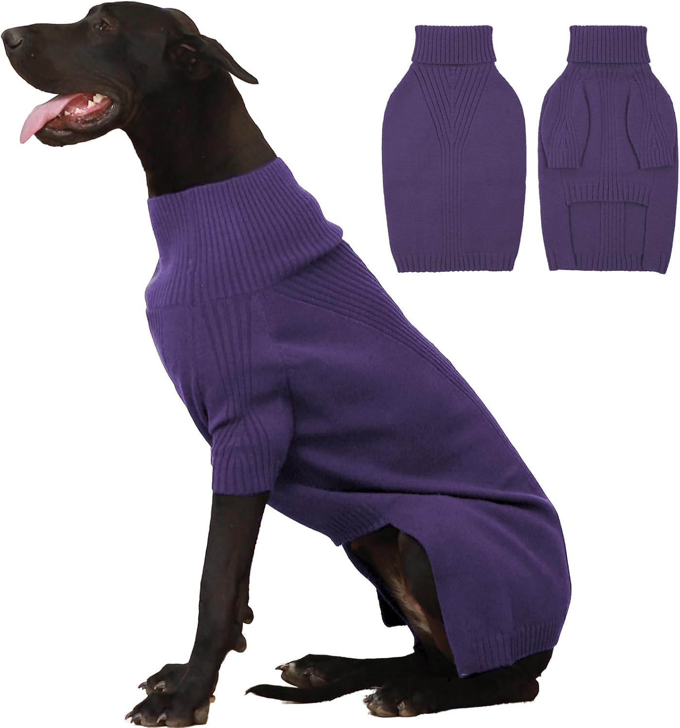Turtleneck Dog Sweater with Sleeves: This knit sweater for dogs with turtleneck design that can fully wrap your pet's neck, chest and belly snugly.Cut higher in the belly for easy potty breaks,pullover design makes it easy to put on and take off