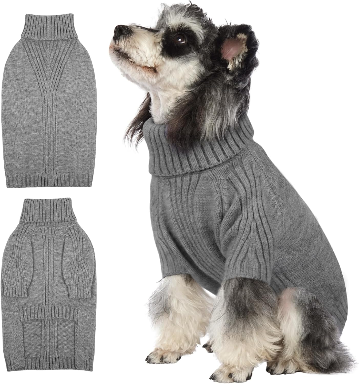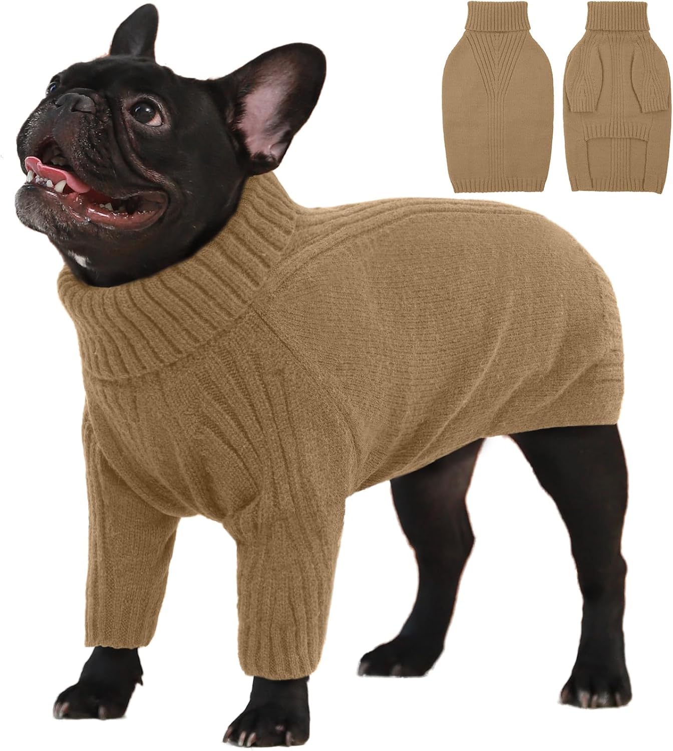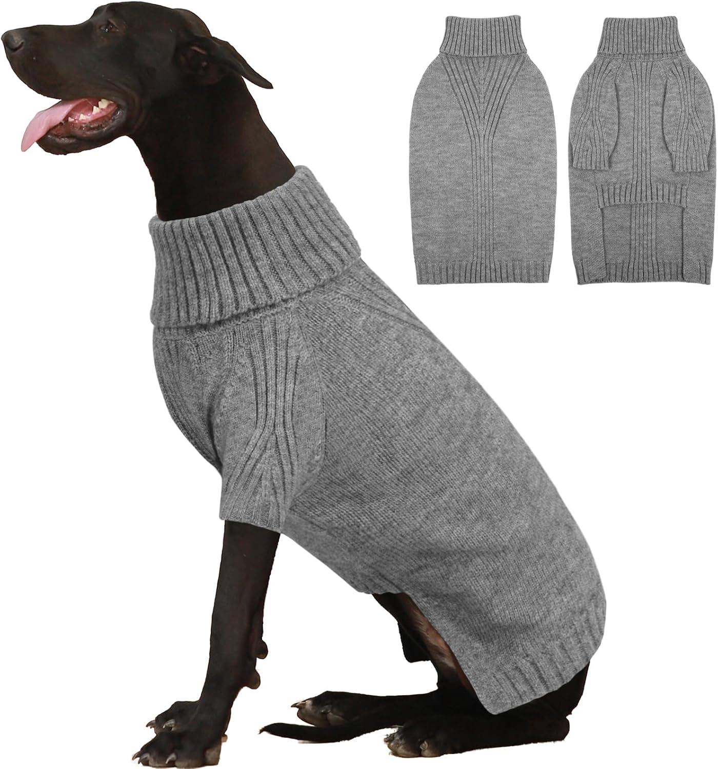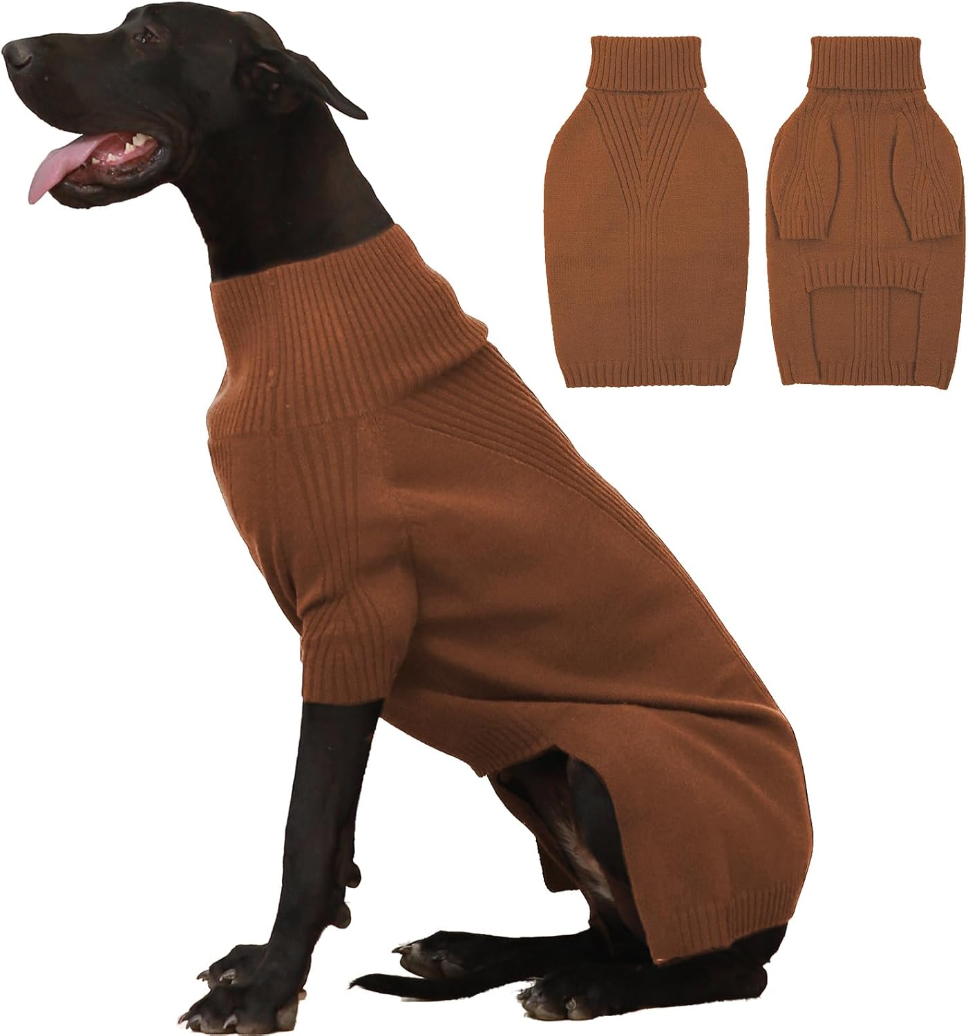 Turtleneck Dog Sweater with Sleeves: This knit sweater for dogs with turtleneck design that can fully wrap your pet's neck, chest and belly snugly.Cut higher in the belly for easy potty breaks,pullover design makes it easy to put on and take off