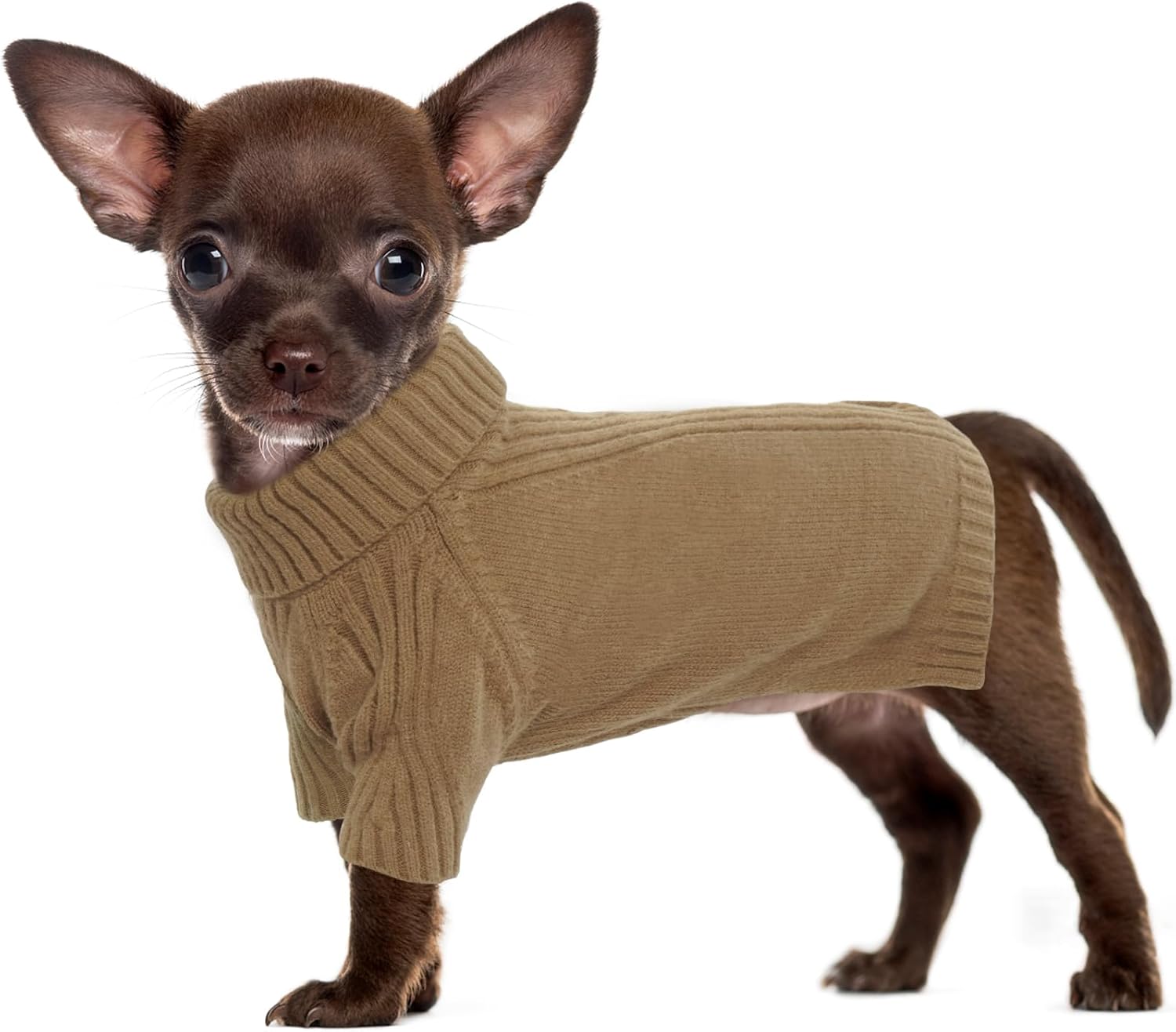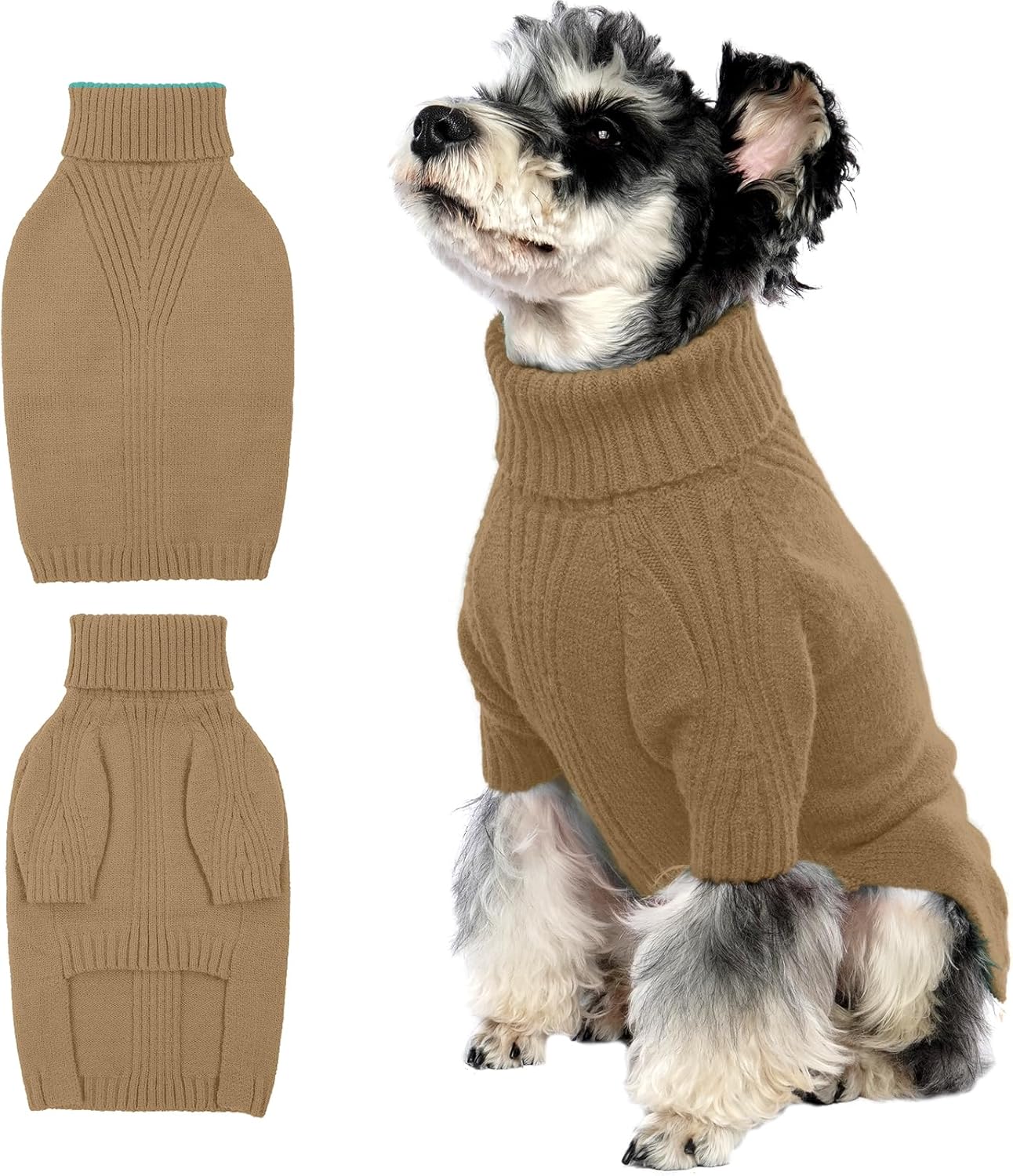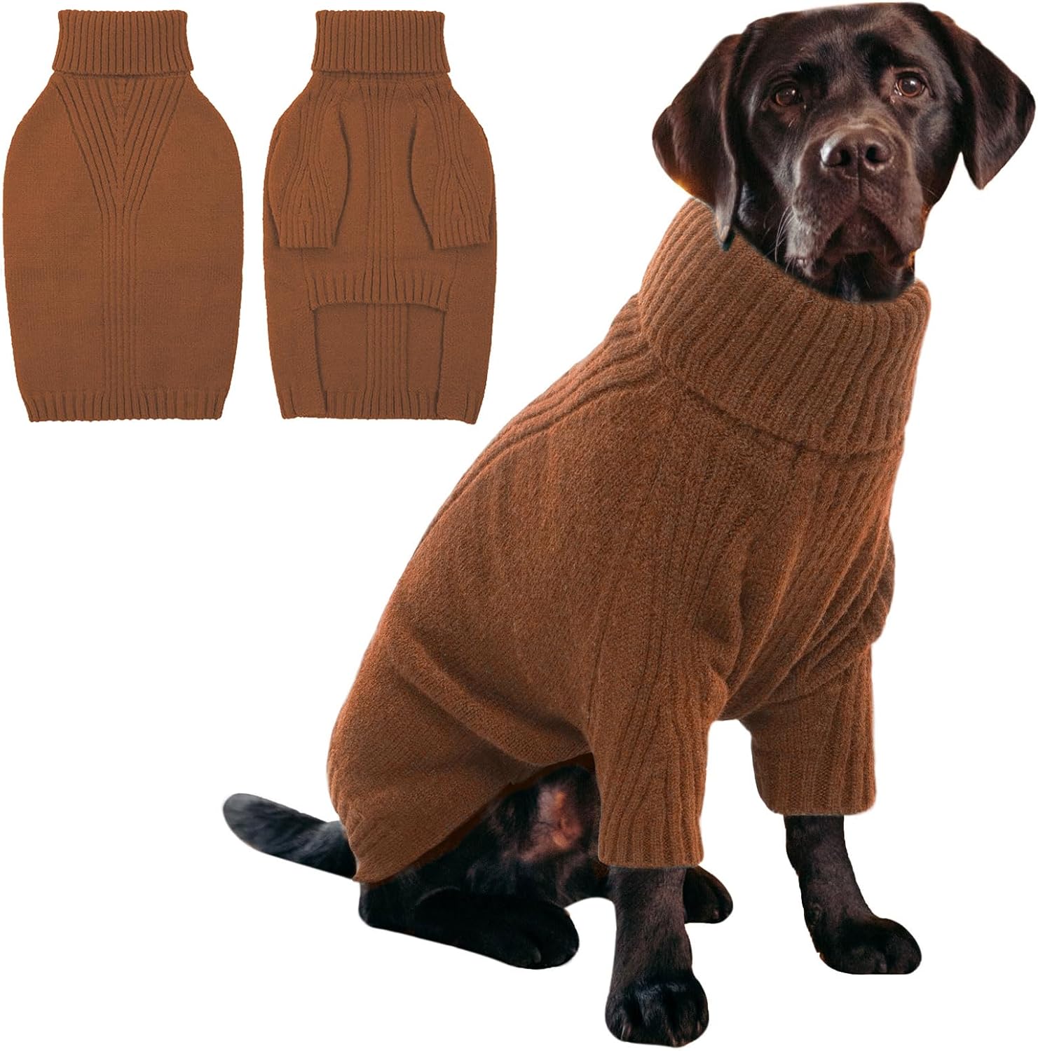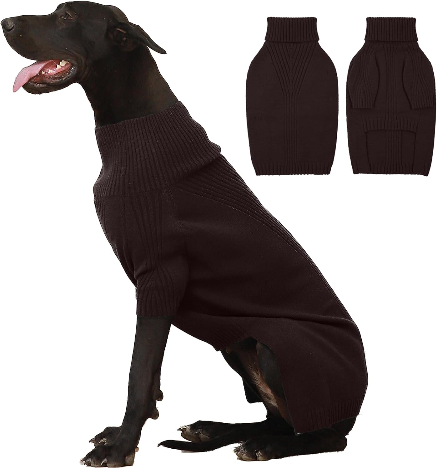 Turtleneck Dog Sweater with Sleeves: This knit sweater for dogs with turtleneck design that can fully wrap your pet's neck, chest and belly snugly.Cut higher in the belly for easy potty breaks,pullover design makes it easy to put on and take off